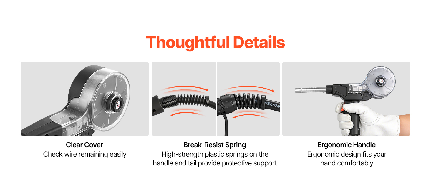 Vizuálne sledovanie drôtu v kombinácii s pohodlným úchopom zvyšuje efektivitu pracovného toku a zaisťuje plynulejšie zváranie.