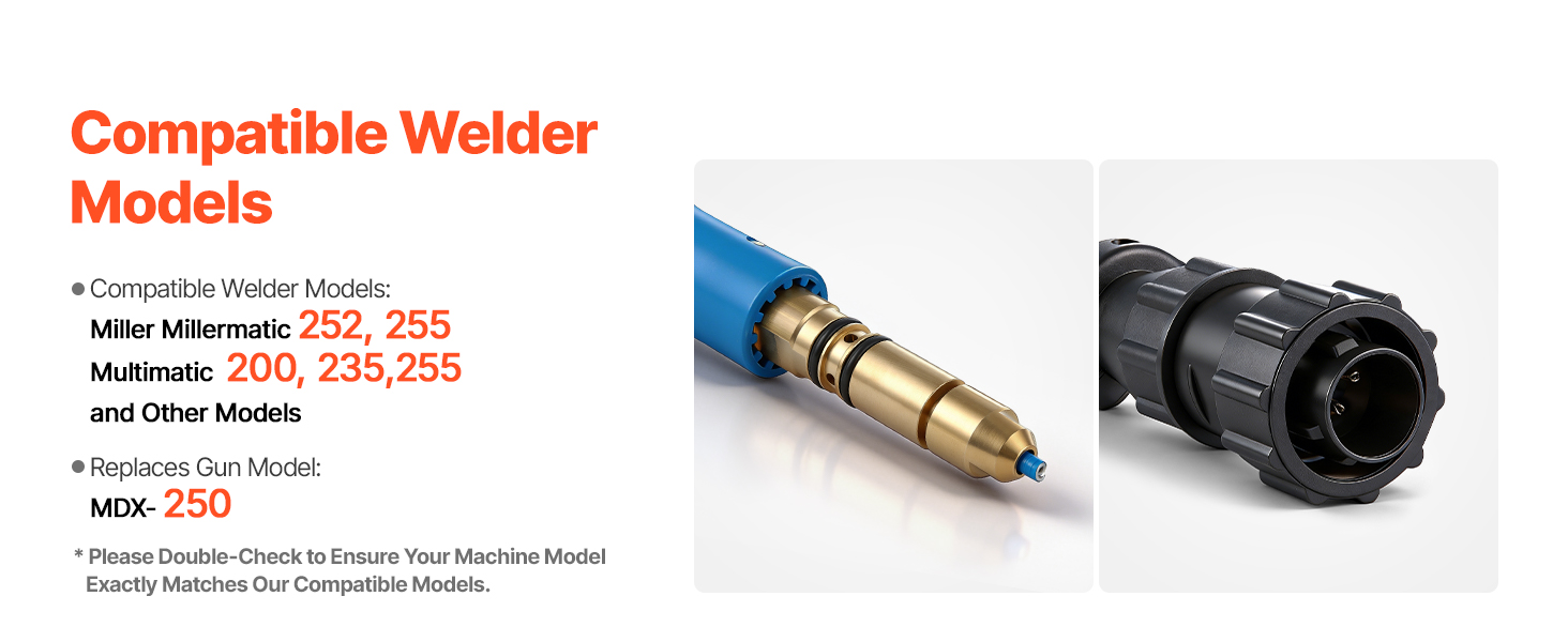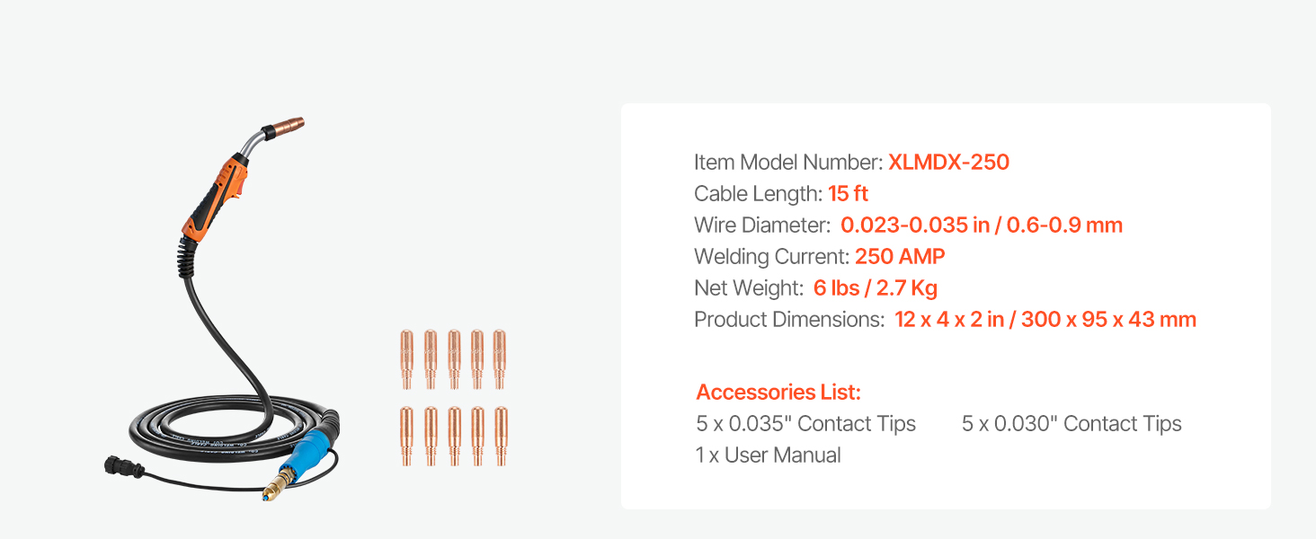 Táto zváracia pištoľ MIG s výkonom 250 A je vybavená 4,57 m (15 ft) káblom z čistej medi a slúži ako náhrada za model Miller MDX-250. Zvláda rôzne zváracie úlohy s ľahkosťou a efektívnosťou, vďaka čomu je ideálna ako pre profesionálne práce, tak aj pre domáce projekty.