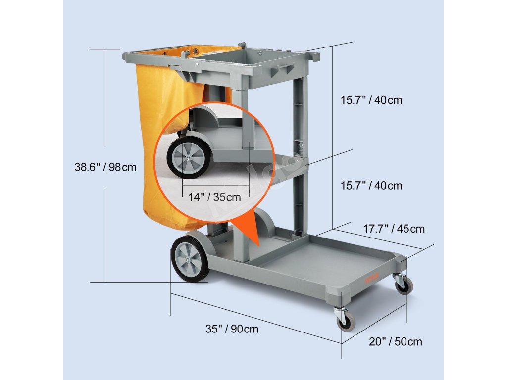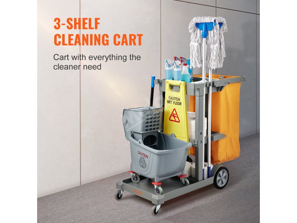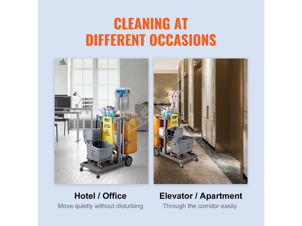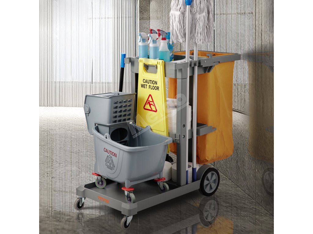 S upratovacím vozíkom VEVOR sa ľahko manévruje. Je vybavený dvoma 360° univerzálnymi prednými kolieskami a dvoma stabilnými zadnými kolieskami. Vďaka širokej rukoväti je tlačenie vozíka bezproblémové. Vďaka tejto konštrukcii môžete ľahko upratovať kancelárie, hotely, letiská a ďalšie miesta. Bez problémov rýchlo vyčistíte všetok odpad. Tieto kolieska sú odolné a ľahko sa neopotrebujú, pretože zaisťujú, že vozík zostane funkčný dlhý čas. Vďaka tejto vlastnosti je vozík veľmi univerzálny na rôzne upratovacie úlohy.