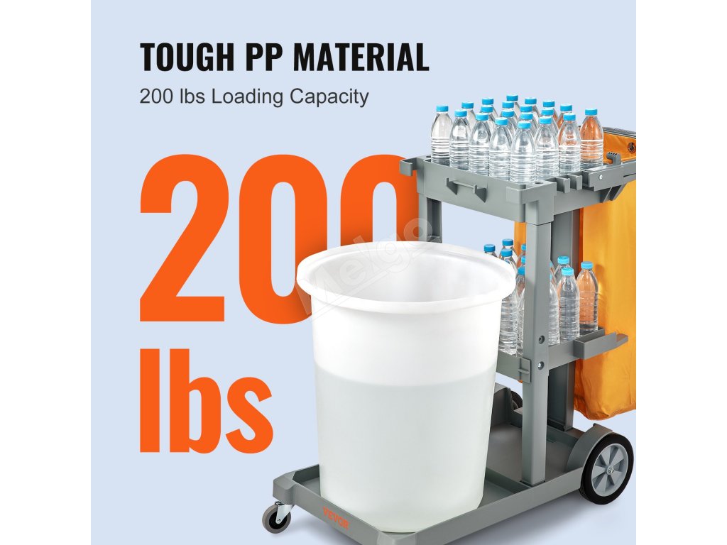 Kancelársky upratovací vozík VEVOR je ideálny na úlohy upratovania. Má priestranný dizajn. Môžete v ňom ľahko prenášať všetky upratovacie nástroje naraz. Vozík pojme až 200 kg čistiacich potrieb a odpadu. Vďaka tomu je ideálny aj na veľké upratovacie úlohy. Vďaka vysokej nosnosti nemusíte často chodiť likvidovať odpad, čo vám ušetrí čas a námahu. Vozík ponúka ľahkú manévrovateľnosť, vďaka ktorej ho môžete presúvať z miestnosti do miestnosti. Jednou z výhod tejto funkcie je, že je veľmi praktický na upratovacie práce.