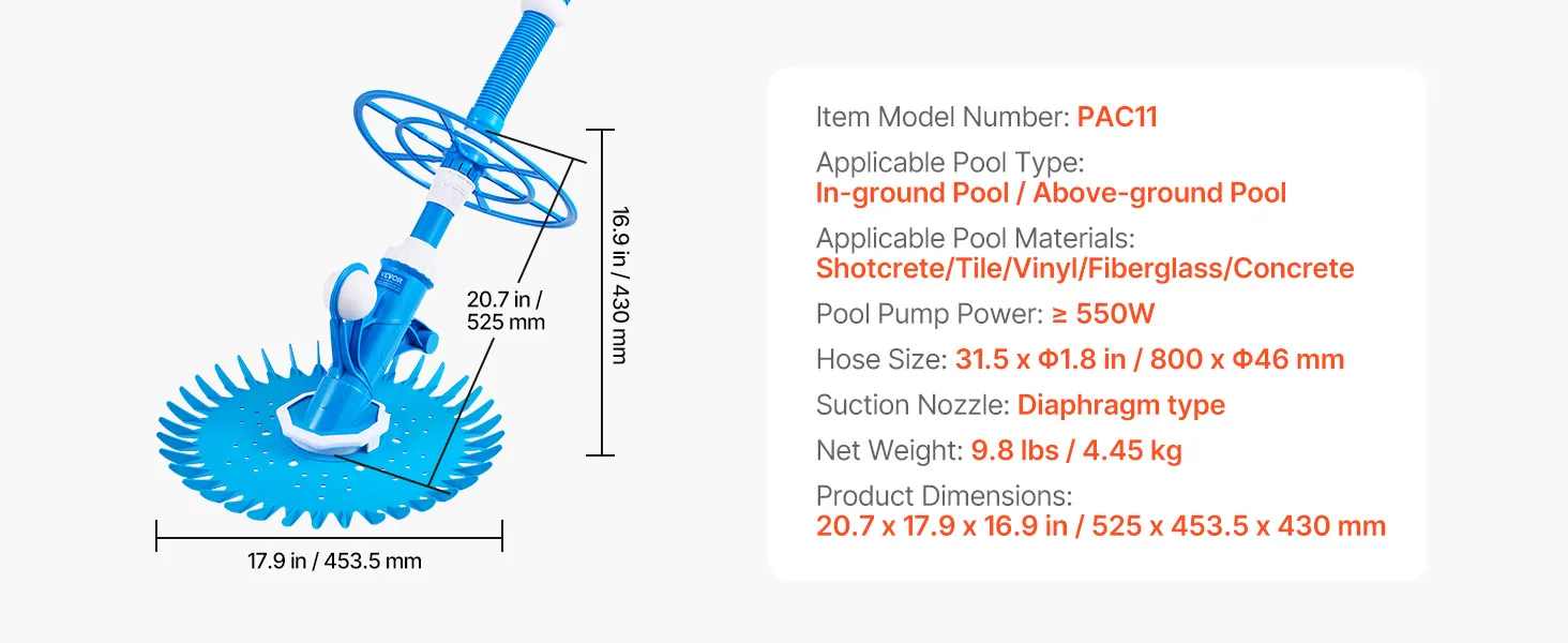 Hľadáte účinnejší a pohodlnejší čistič bazénov? Tento nasávací čistič bazénov ponúka efektívne, pohodlné a automatické riešenie čistenia, vďaka ktorému bude váš bazén stále čistý a uprataný a údržba bazéna bude jednoduchá!