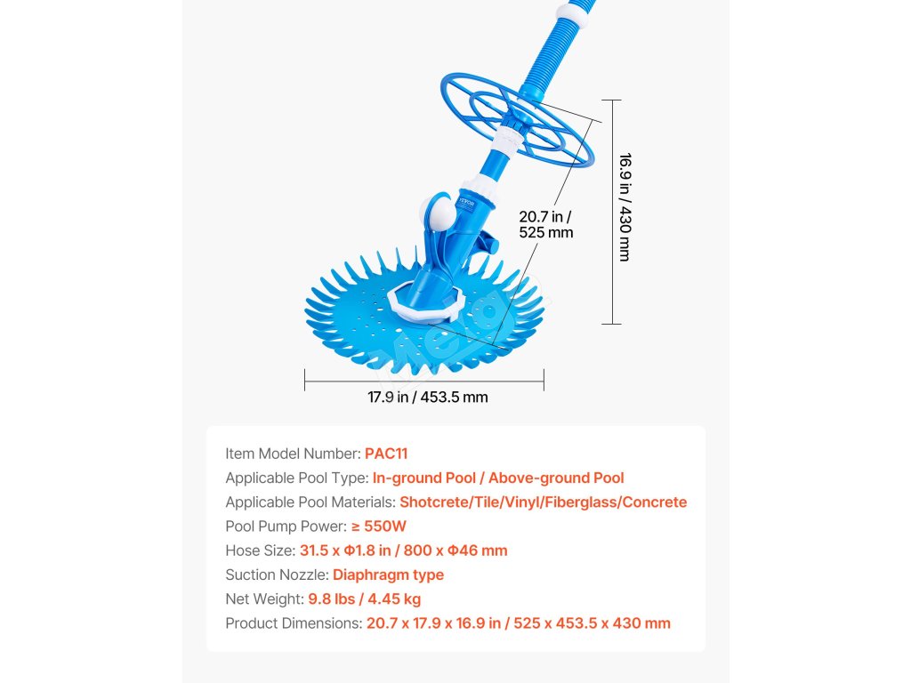 Hľadáte účinnejší a pohodlnejší čistič bazénov? Tento nasávací čistič bazénov ponúka efektívne, pohodlné a automatické riešenie čistenia, vďaka ktorému bude váš bazén stále čistý a uprataný a údržba bazéna bude jednoduchá!