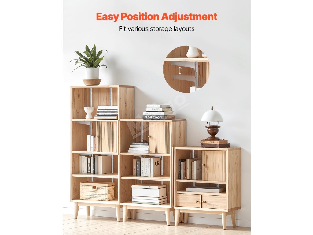 Výška policovej koľajnice sa bez námahy nastavuje tak, aby sa do nej zmestilo všetko od veľkých zásobníkov až po malé dekoračné predmety, čo vám poskytuje úplnú flexibilitu pri usporiadaní.