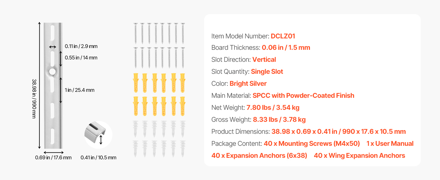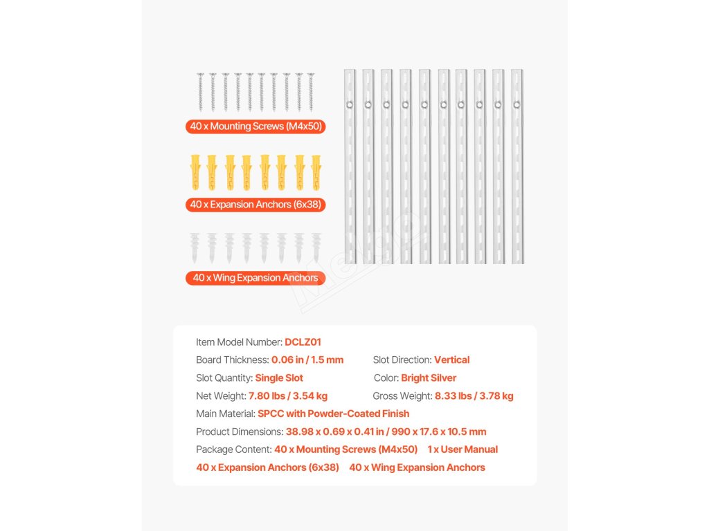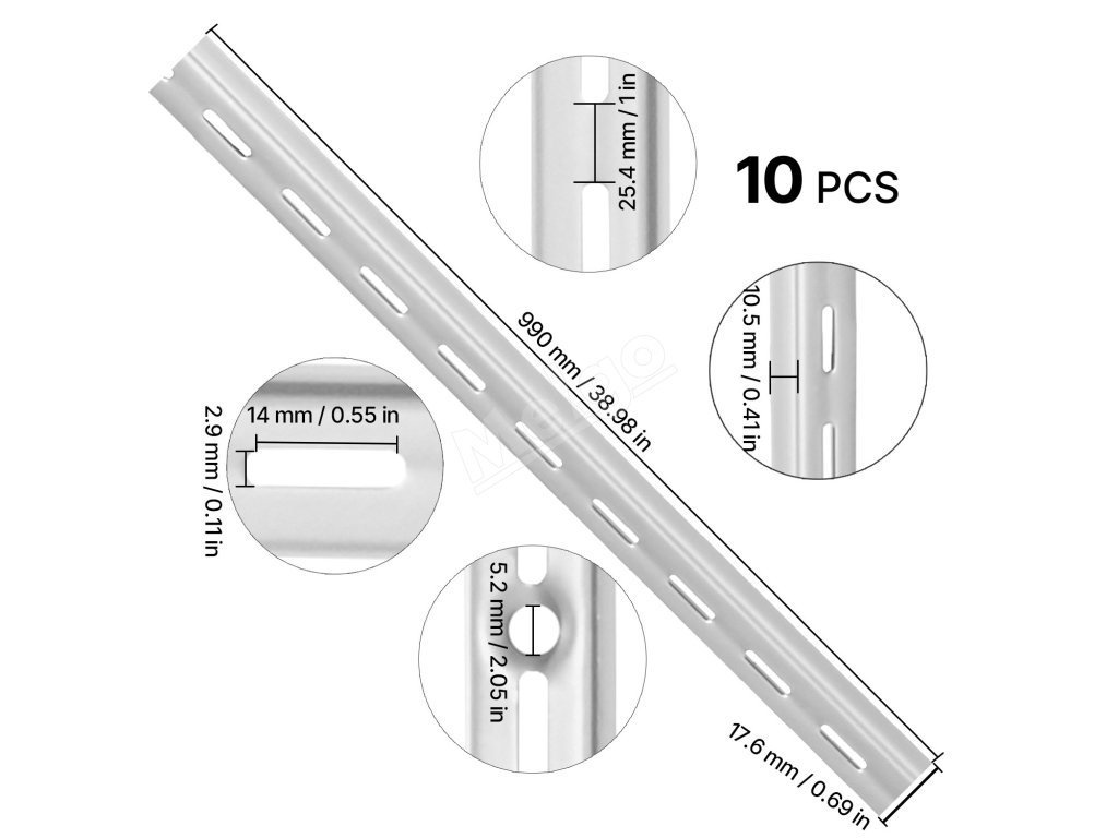 Vertikálny nosník na police 39-inch, 10 ks, s drážkou, 40 skrutiek