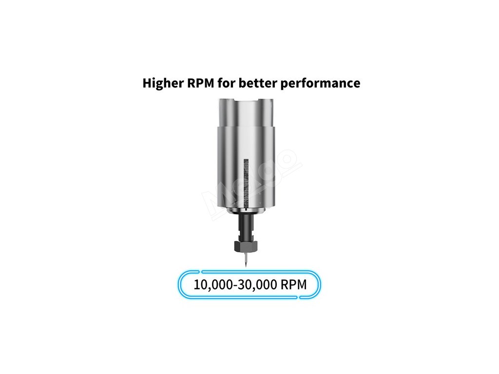 Presný gombík na reguláciu otáčok vám umožňuje vybrať si zo 6 nastavení rýchlosti v rozsahu od 10 000 do 30 000 otáčok za minútu. Táto všestrannosť spĺňa rôzne komplexné procesné požiadavky, vďaka čomu je základným nástrojom pre detailné drevárske práce.
