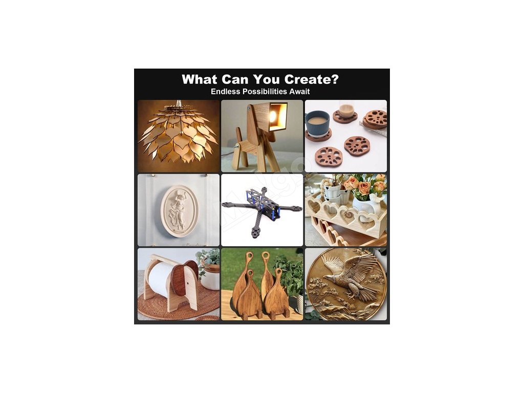 | Špecifikácia | Pracovná plocha: Rozmery: 600 x 500 x 100 mm (23,6in19,6in3,9in) Materiál: Hliník Podporované priemery nástrojov: Zobrazenie zariadenia: 0,5-7 mm (svorka ER11) Zobrazenie zariadenia: 0,5-7 mm (svorka ER11) Zobrazenie zariadenia: 0,5-7 mm: 3,5-palcový farebný rezistívny displej IPS, dotykový (rozlíšenie 480 x 320 pixelov) Maximálna rýchlosť frézovania: 5000 mm/min Maximálne zrýchlenie: 500 mm/s² Motor vretena: 500 mm/s² Operačný systém: Windows, macOS, Linux Napätie: 24 V Výkon: 110 W celkovo, 15 W v pohotovostnom režime Výška reznej vrstvy: 1,5 mm: Nekovové 0,1 mm - 20 mm | Kovové 0,1 mm - 0,2 mm Kompatibilné gravírovacie materiály: Preglejka/MDF/pevné drevo/akryl/uhlíkové vlákno/hliník/meď/nerezová oceľ |