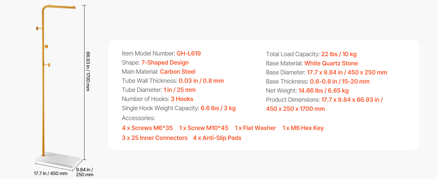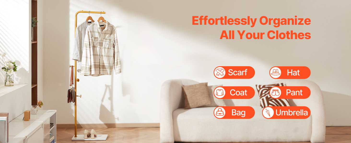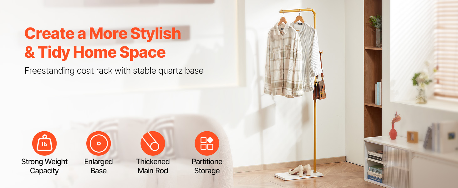 S vešiakom VEVOR budete mať kabáty, čiapky, šály a kabelky úhľadne zavesené a usporiadané. Tento štýlový vešiakový stojan na oblečenie má stabilnú základňu z kremenného kameňa, 3 odstupňované okrúhle háčiky a zosilnenú hlavnú tyč z uhlíkovej ocele - ideálny do vstupných priestorov, spální, kancelárií alebo obývacích izieb.