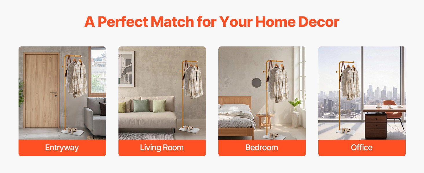 Tento kompaktný a priestorovo úsporný stojan na vešiaky na oblečenie je ideálny do vstupných priestorov, spální, pracovní a kancelárií. Jeho jedinečný dizajn spája praktickosť s dekoráciou, čím vyrieši vaše problémy s uskladnením a zároveň zvýrazní štýl vášho domova.