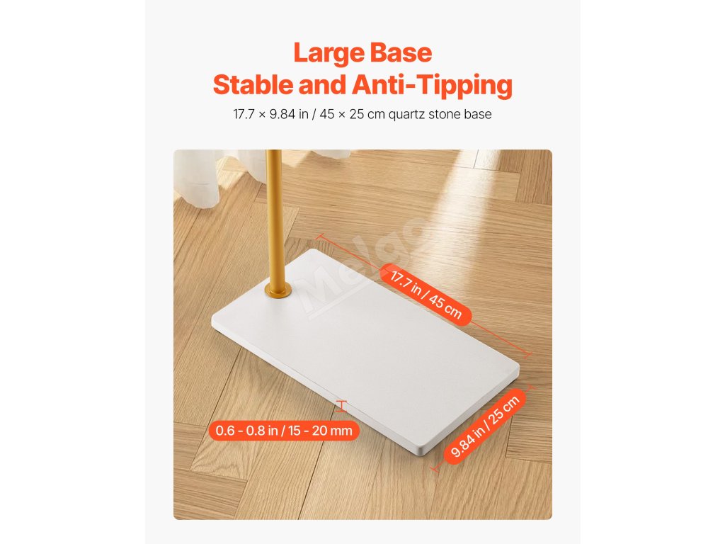 Prečo je náš voľne stojaci vešiak na šaty taký stabilný a odolný? Je vybavený zosilnenou hlavnou tyčou z uhlíkovej ocele, základňou z kremenného kameňa proti prevráteniu a protišmykovými spodnými podložkami - bezpečne udrží kabáty, tašky a klobúky, vďaka čomu sa stane nepostrádateľným doplnkom vašej domácnosti.