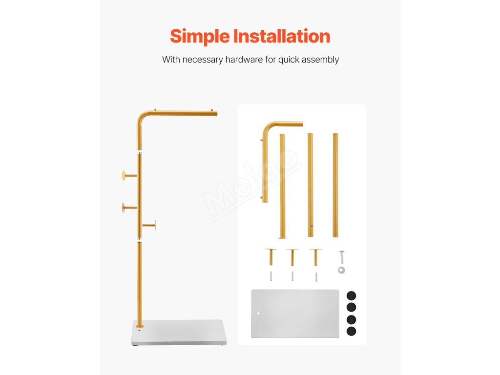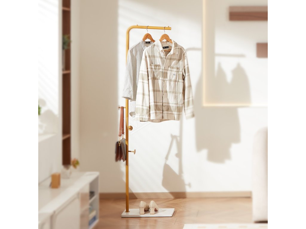 Tento kompaktný a priestorovo úsporný stojan na vešiaky na oblečenie je ideálny do vstupných priestorov, spální, pracovní a kancelárií. Jeho jedinečný dizajn spája praktickosť s dekoráciou, čím vyrieši vaše problémy s uskladnením a zároveň zvýrazní štýl vášho domova.