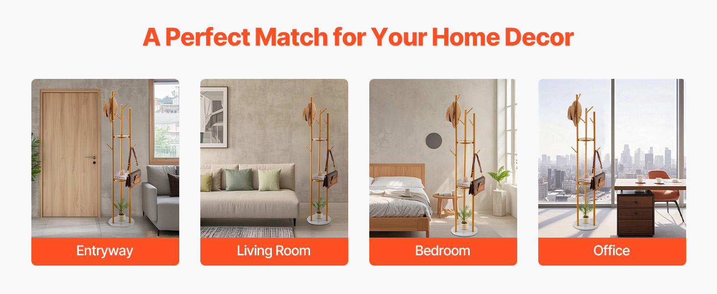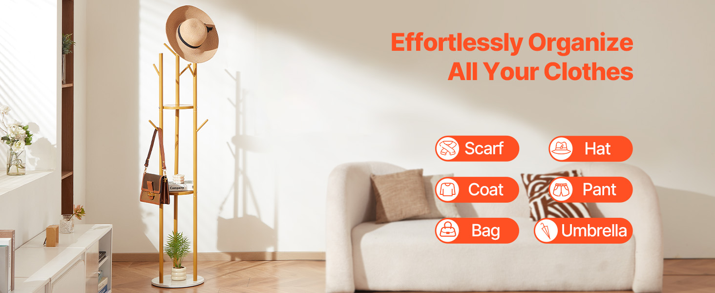 Tento kompaktný a priestorovo úsporný stojan na vešiaky na oblečenie je ideálny do vstupných priestorov, spální, pracovní a kancelárií. Jeho jedinečný dizajn spája praktickosť s dekoráciou, čím vyrieši vaše problémy s uskladnením a zároveň zvýrazní štýl vášho domova.