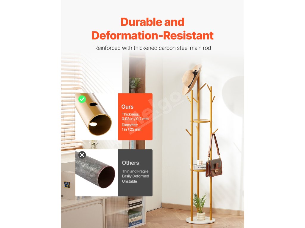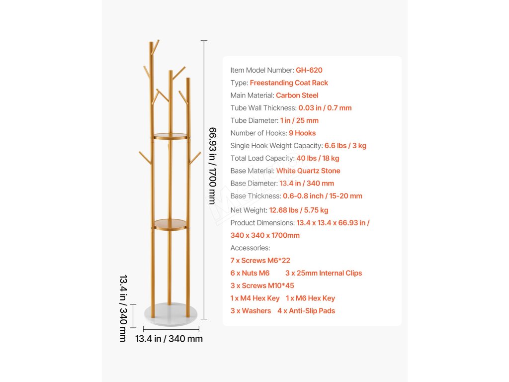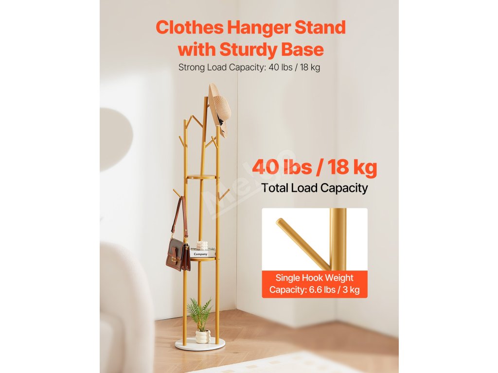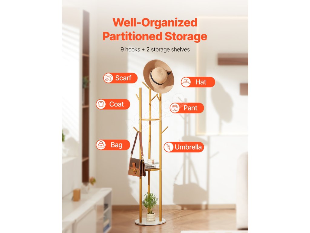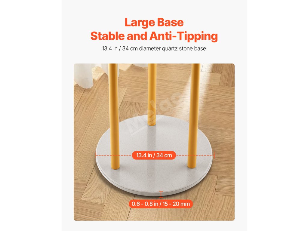 S vešiakom VEVOR budete mať kabáty, čiapky, šály a kabelky úhľadne zavesené a usporiadané. Tento štýlový vešiakový stojan na oblečenie má stabilnú základňu z kremenného kameňa, 9 šachovnicovo usporiadaných háčikov a hlavnú tyč zo zosilnenej uhlíkovej ocele - je ideálny do vstupných priestorov, spální, kancelárií alebo obývacích izieb.