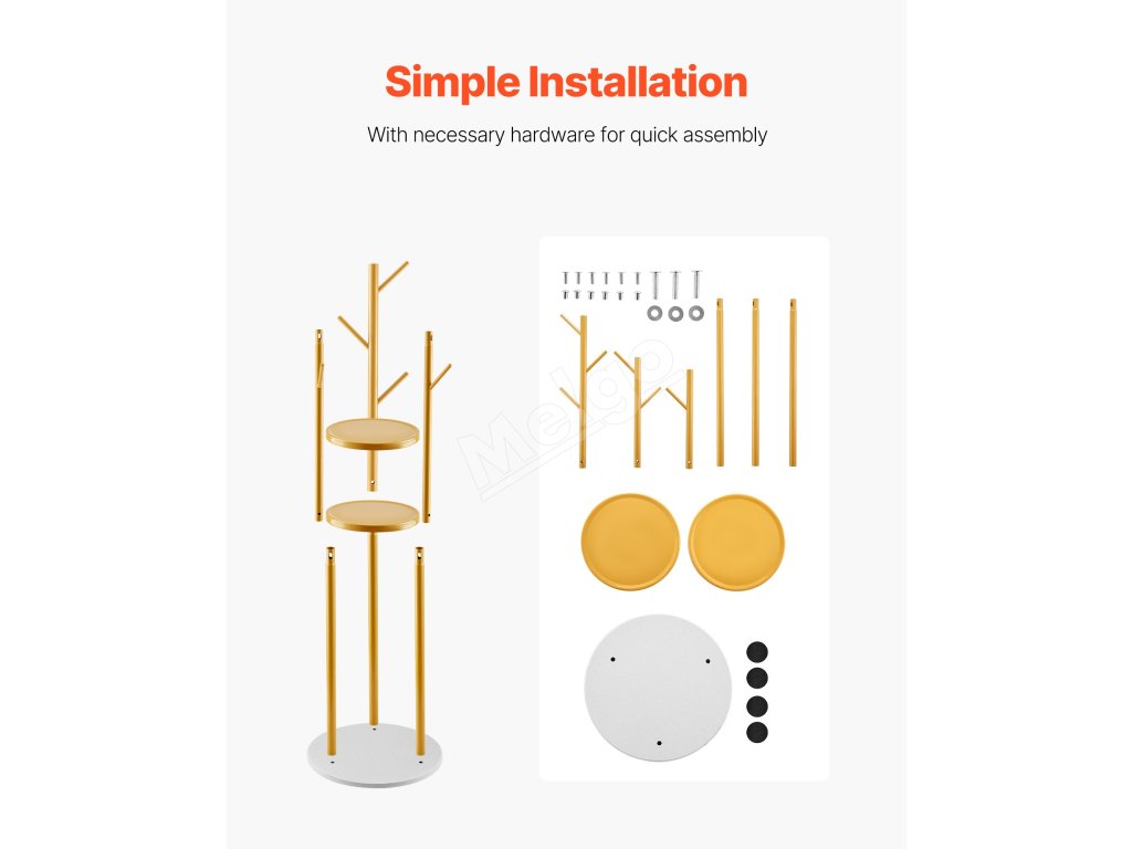 Tento kompaktný a priestorovo úsporný stojan na vešiaky na oblečenie je ideálny do vstupných priestorov, spální, pracovní a kancelárií. Jeho jedinečný dizajn spája praktickosť s dekoráciou, čím vyrieši vaše problémy s uskladnením a zároveň zvýrazní štýl vášho domova.