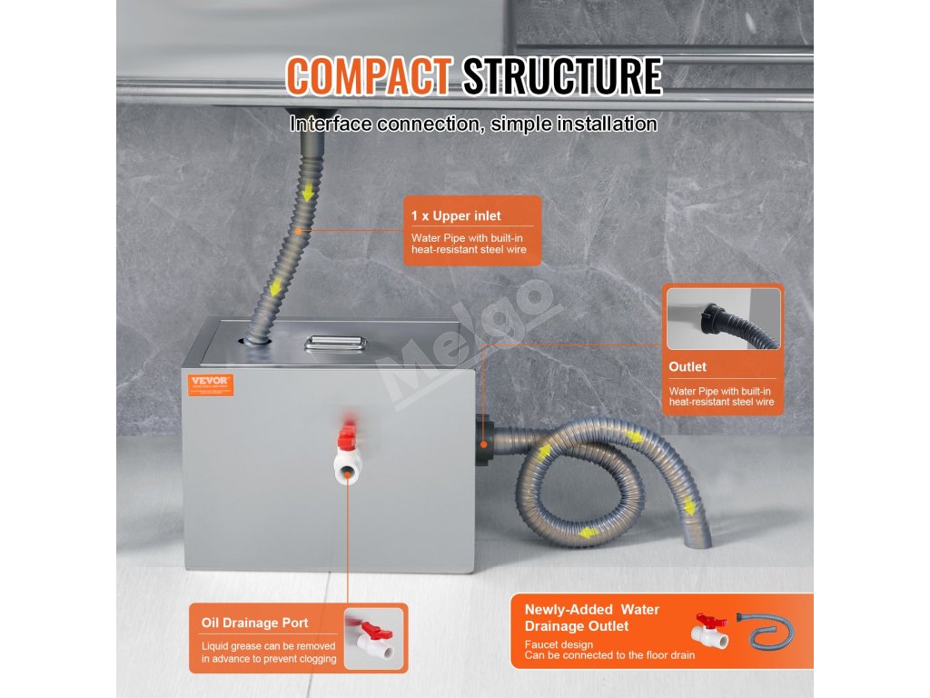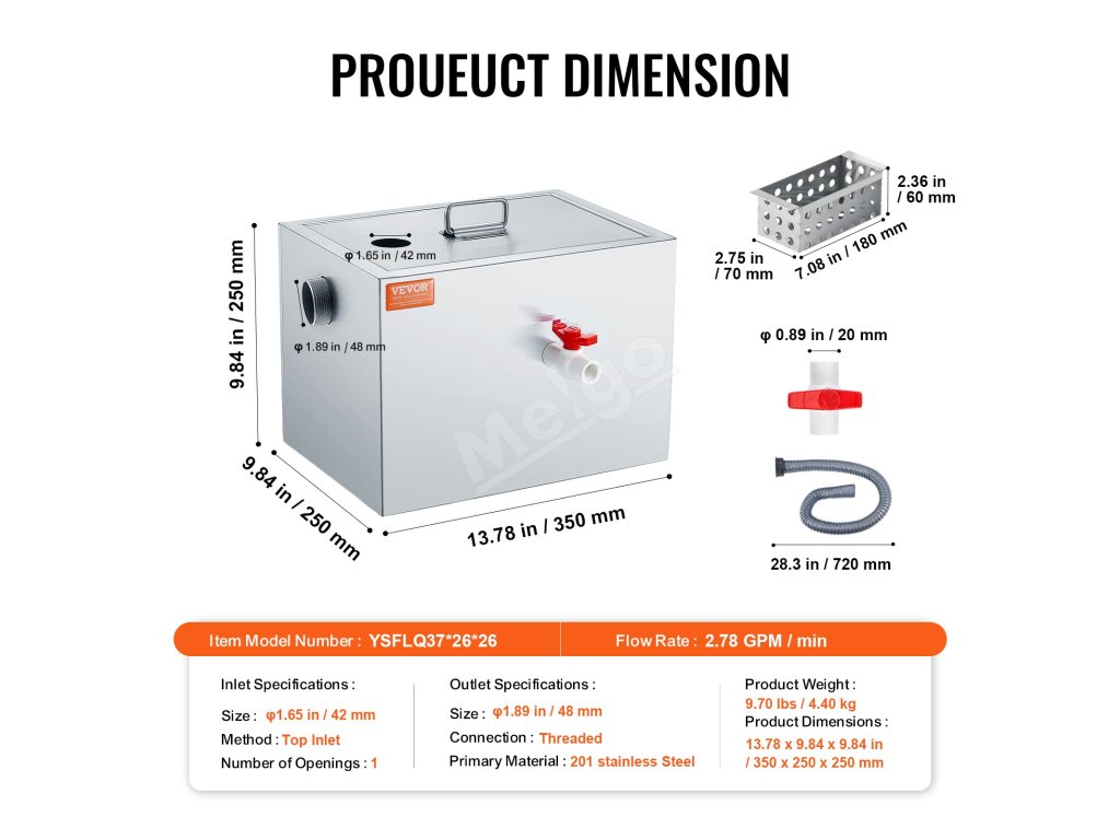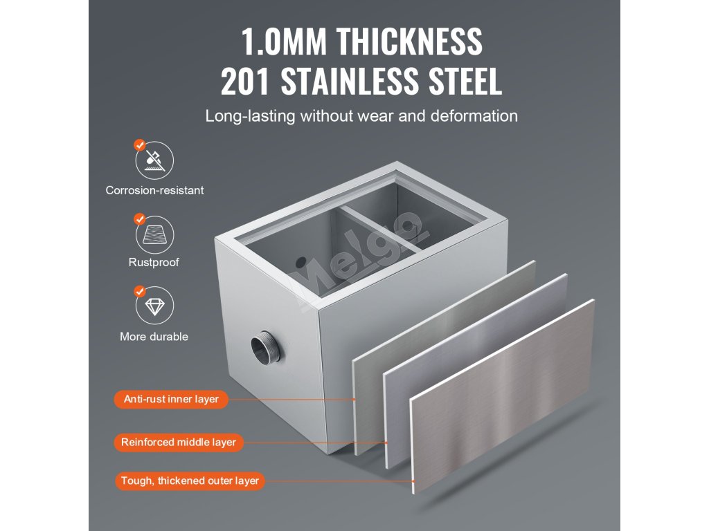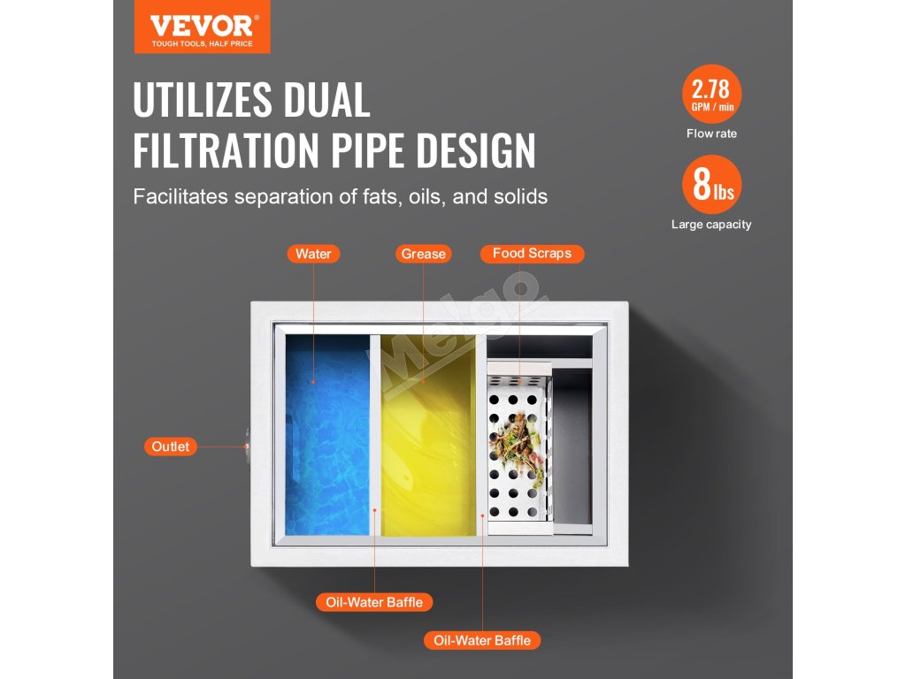 Odlučovač tukov 3,6 kg, 2,8 GPM, nerezový pod drezom, horný vstup