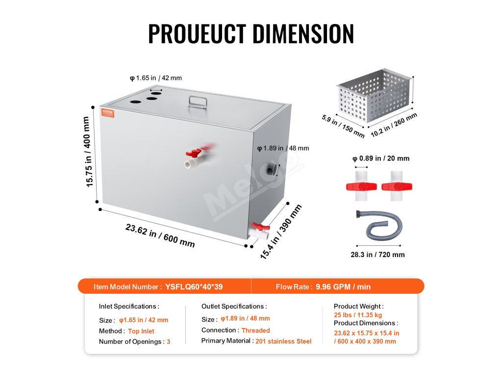 Odlučovač tukov 40 LBS, 10 GPM, nerezový, vrchný vstup, pod drez