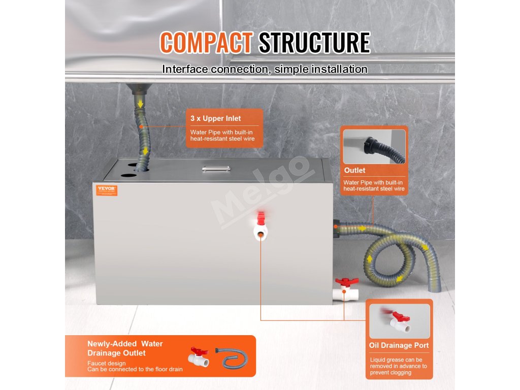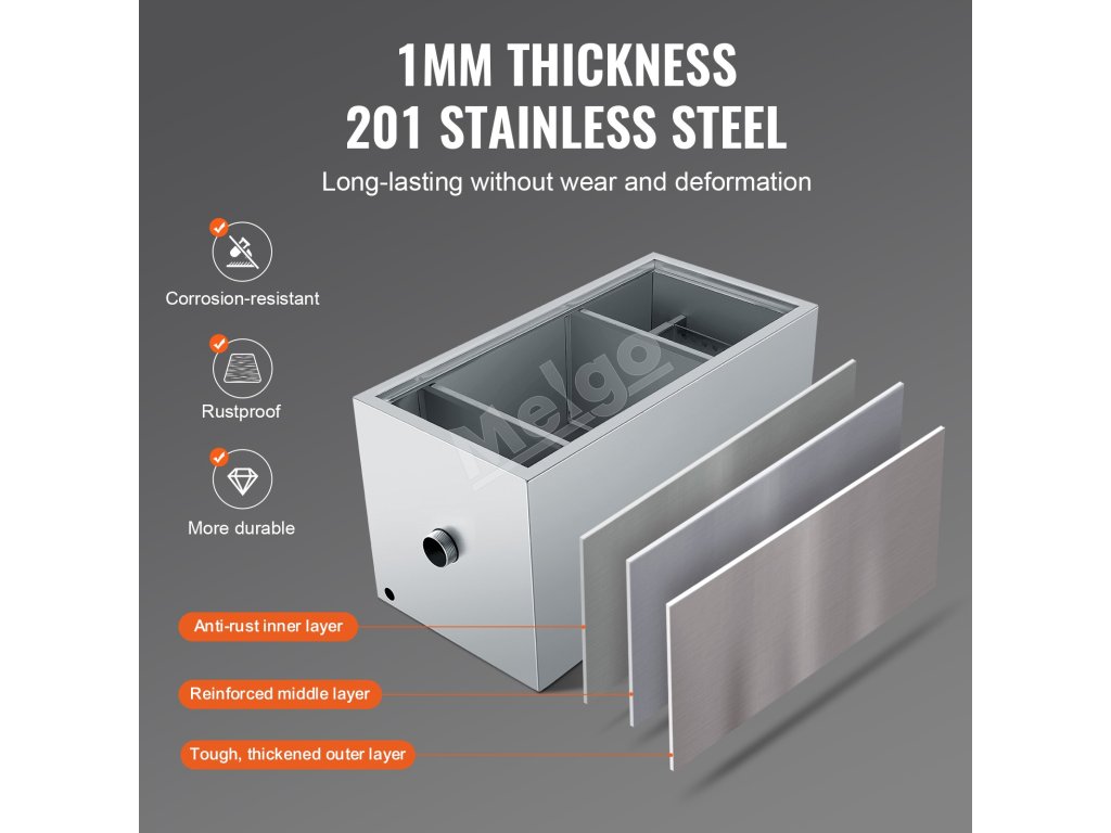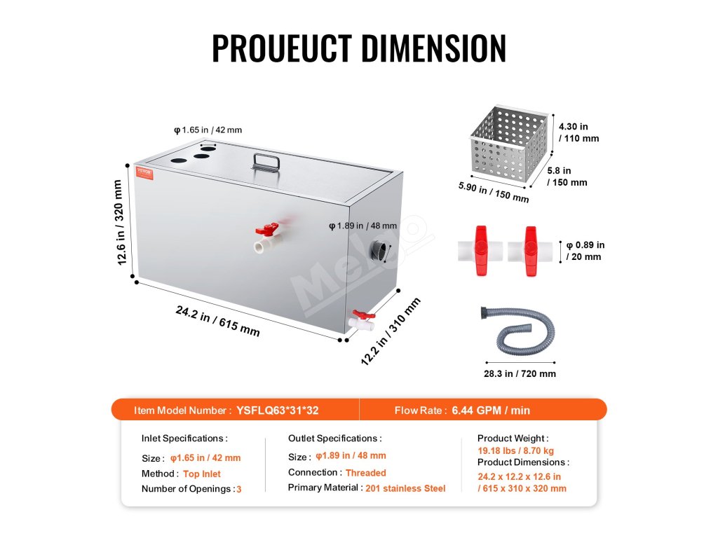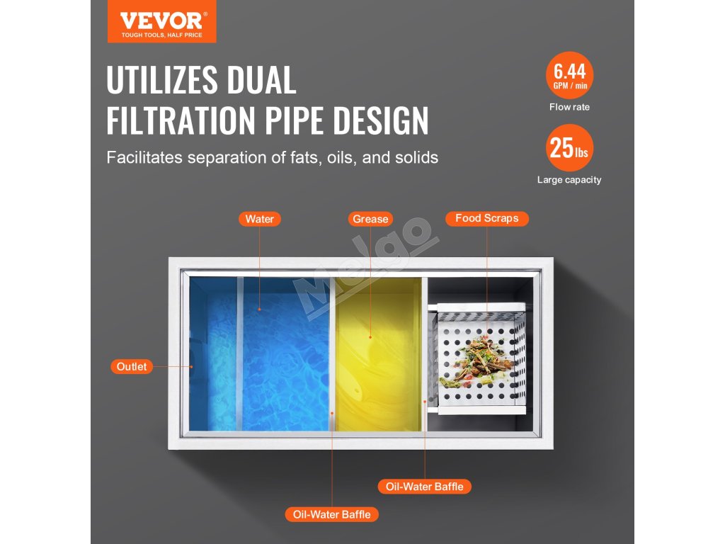 Odlučovač tukov nerez, pod drezom, horný vstup, 11.3 kg, 6.4 GPM