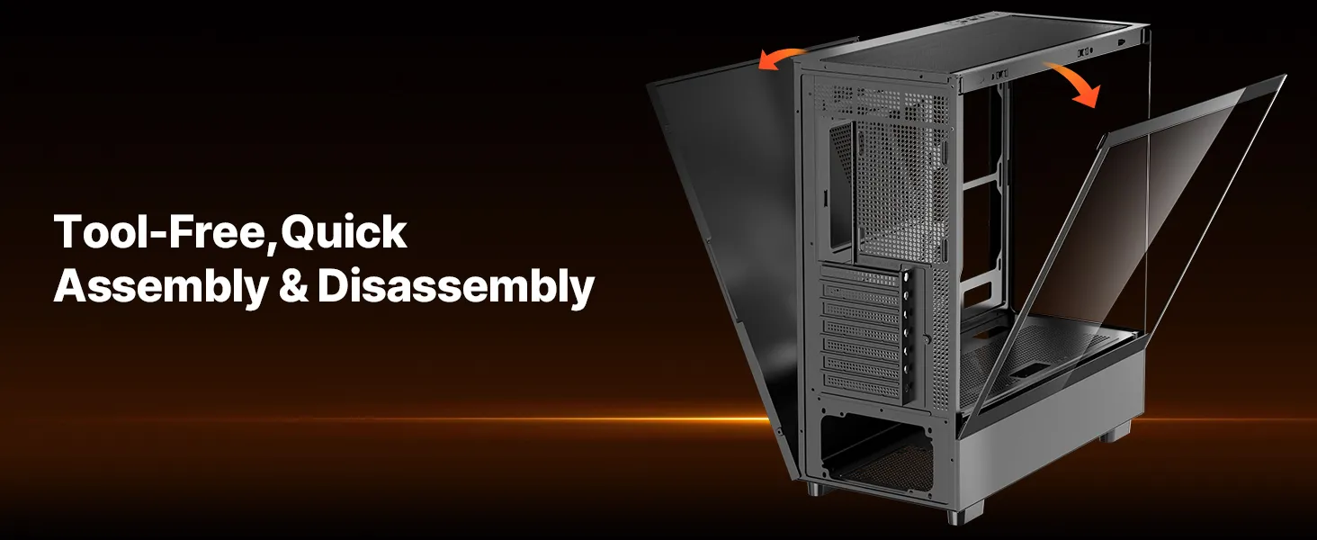 Odpoveď: Nie je potrebné žiadne náradie! Predné sklo a ľavé sklo môžete ľahko oddeliť rukou. Čistíte prach, vymieňate hardvér alebo inštalujete vodné chladenie? Je to rovnako jednoduché ako otvoriť plechovku!