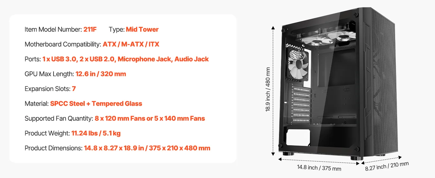 herná počítačová skriňa 211F Mid Tower, navrhnutá pre vášnivých hráčov