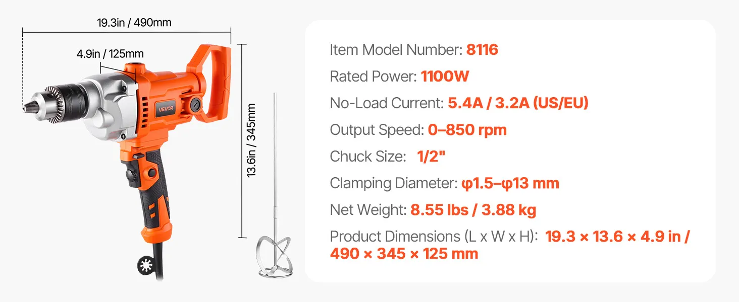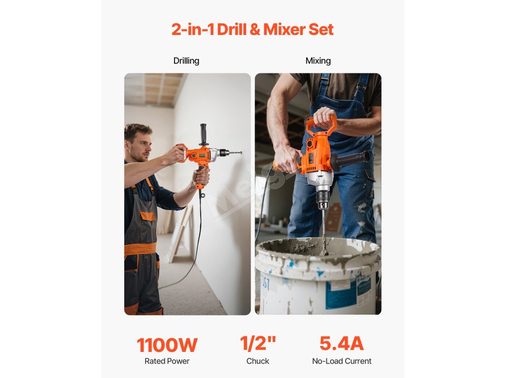 Tento vŕtací miešač s priemerom 1/2 palca (12,7 mm) kombinuje miešanie a vŕtanie v jednom nástroji, ktorý spĺňa širokú škálu úloh. Plynulá regulácia otáčok umožňuje presné nastavenie pre rôzne materiály, zatiaľ čo ergonomická D-rukoväť znižuje námahu pri dlhých úlohách - ideálna na všetko od domácej až po profesionálnu prácu.