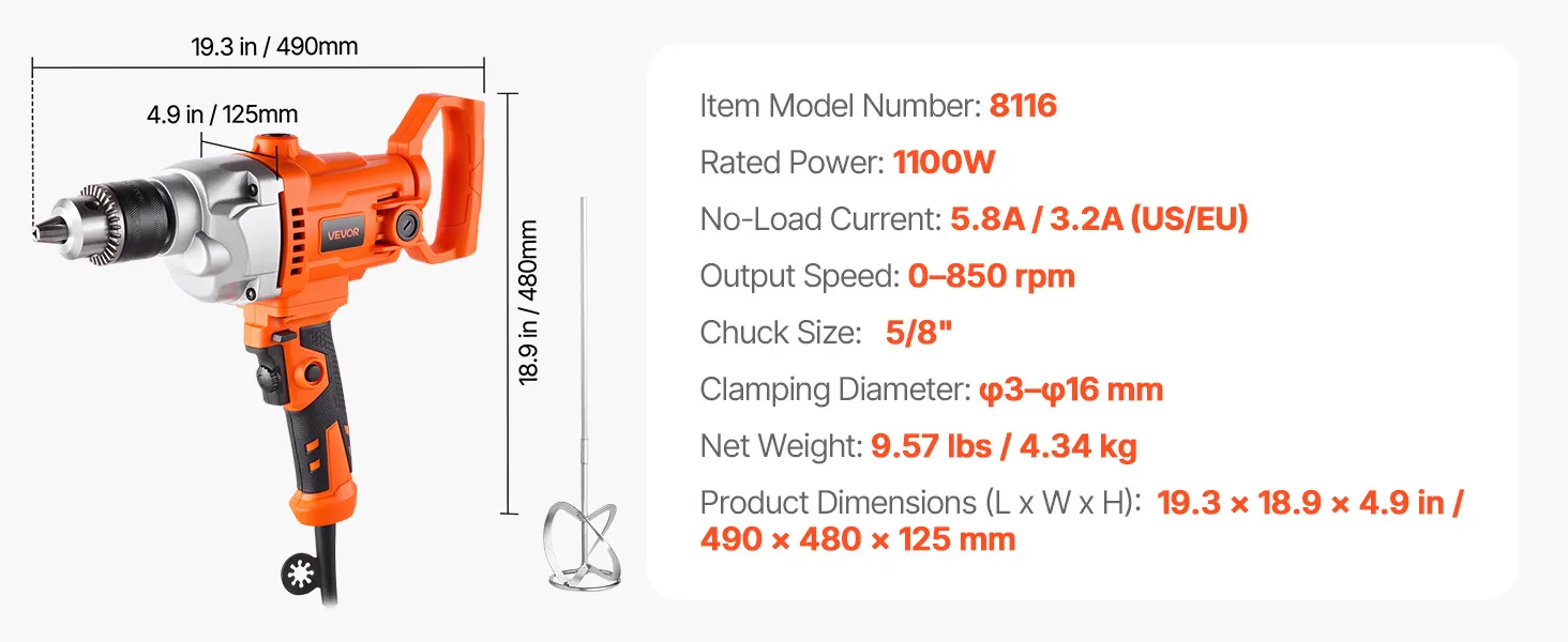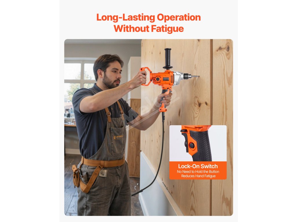 Tento vŕtací miešač s priemerom 5/8 palca (15,89 mm) kombinuje miešanie a vŕtanie v jednom nástroji, ktorý spĺňa širokú škálu úloh. Plynulá regulácia otáčok umožňuje presné nastavenie pre rôzne materiály, zatiaľ čo 360° nastaviteľná rukoväť ponúka lepší komfort a flexibilitu. Ideálne na kutilské aj profesionálne práce.