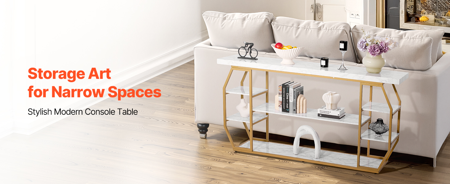 Konzolový stôl s mramorovou doskou, 3 police, zlatá konštrukcia