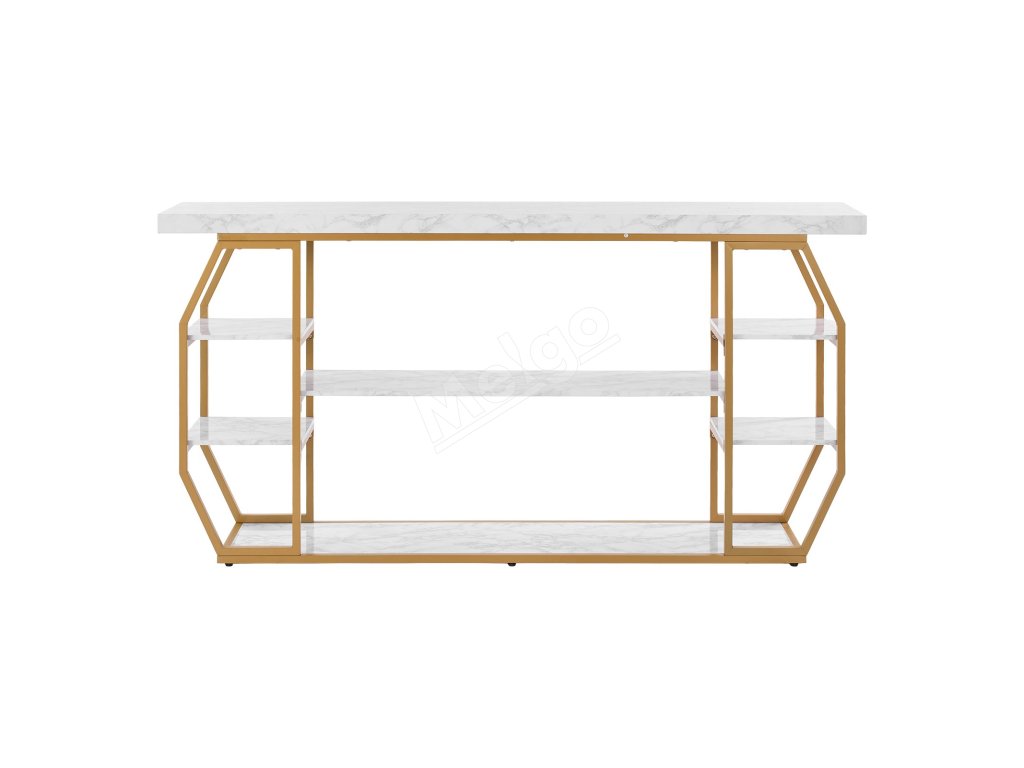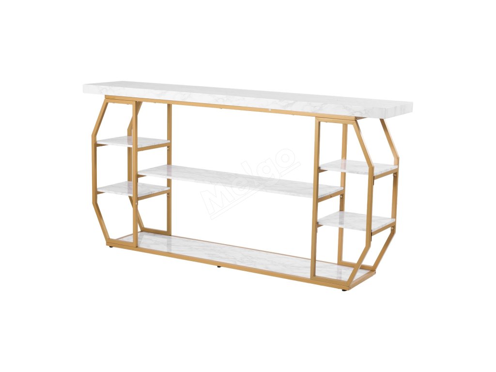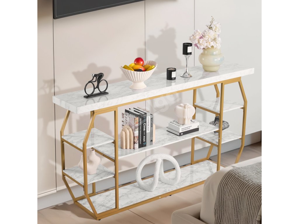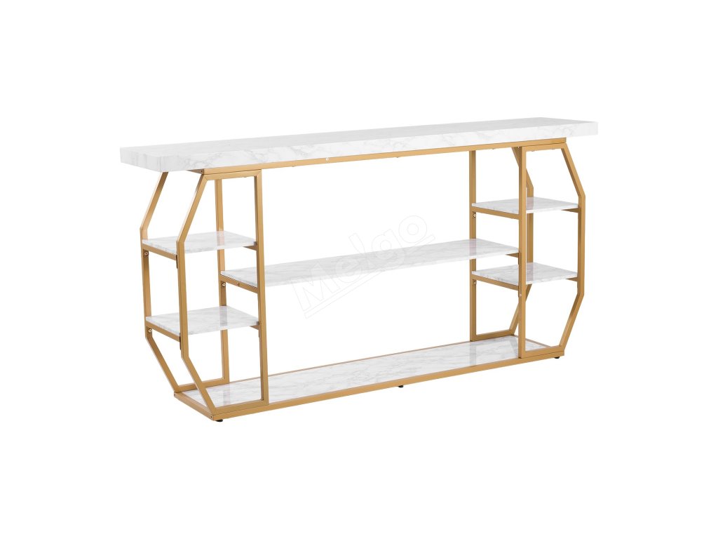 Konzolový stôl s mramorovou doskou, 3 police, zlatá konštrukcia