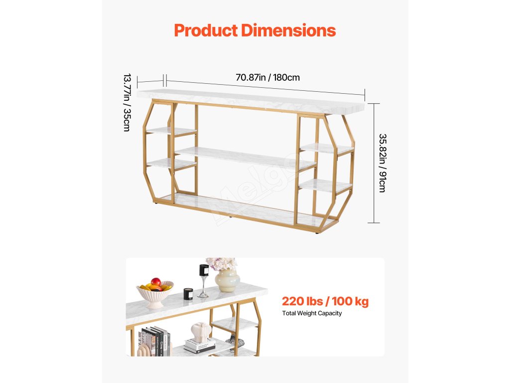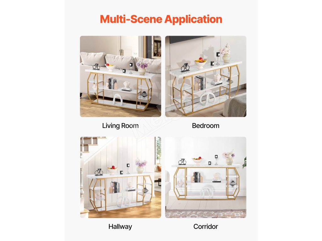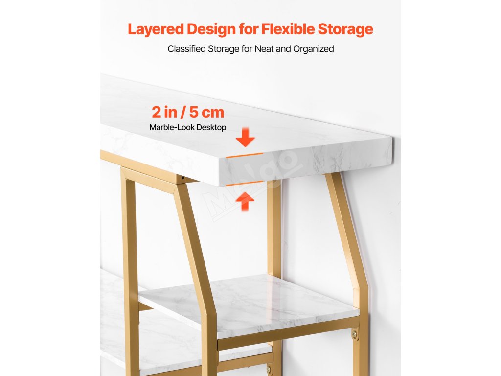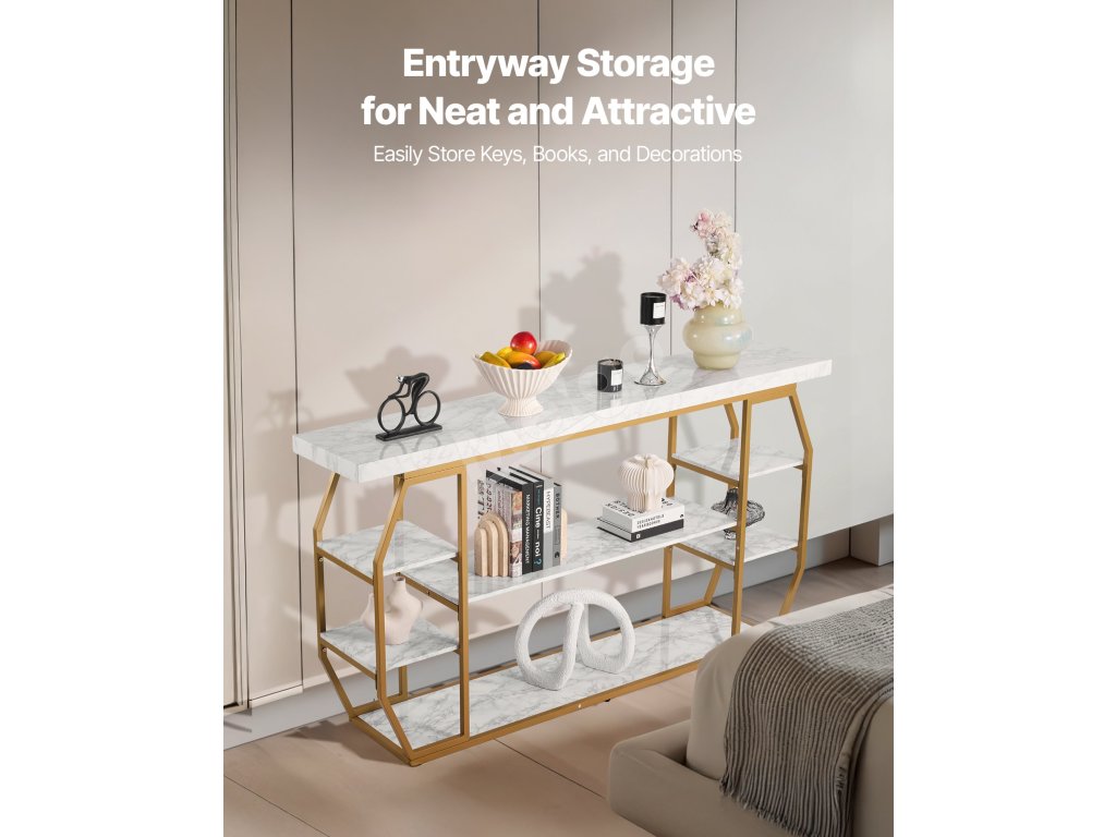 Konzolový stôl s mramorovou doskou, 3 police, zlatá konštrukcia