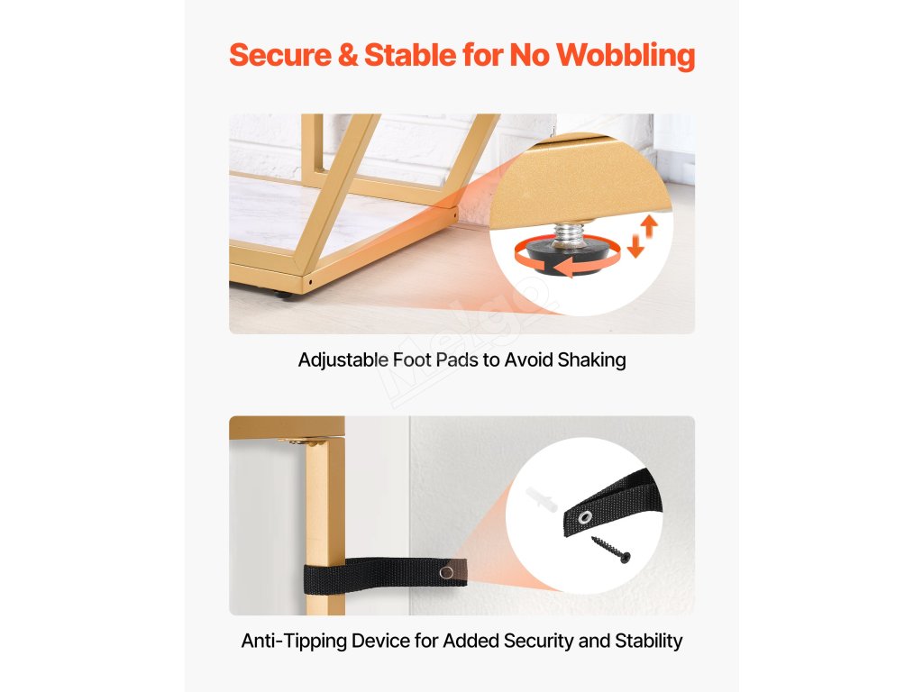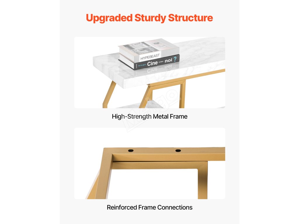 Tento stolík, vyrobený s kovovým rámom Q195, unesie až 220 libier / 100 kg, čím zabezpečuje stabilitu bez kolísania. Stolová doska z umelého mramoru je odolná proti opotrebovaniu a vyrobená tak, aby vydržala.