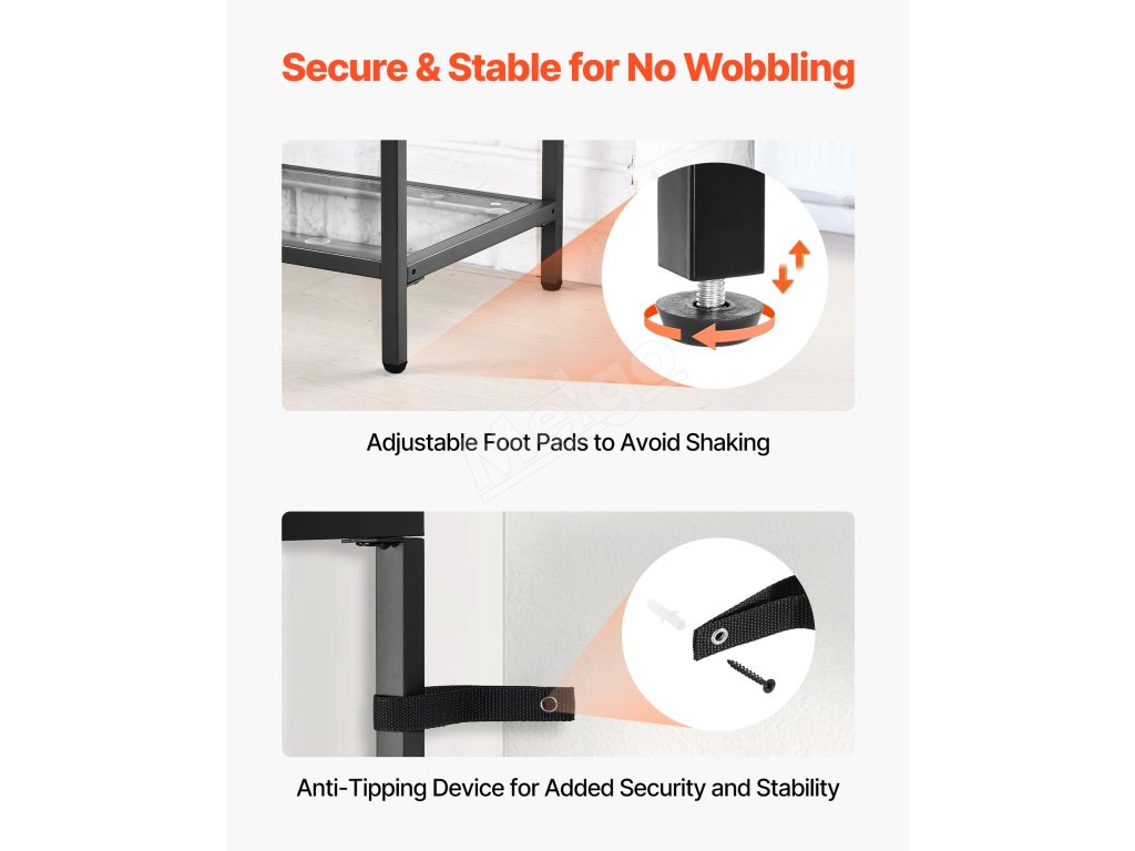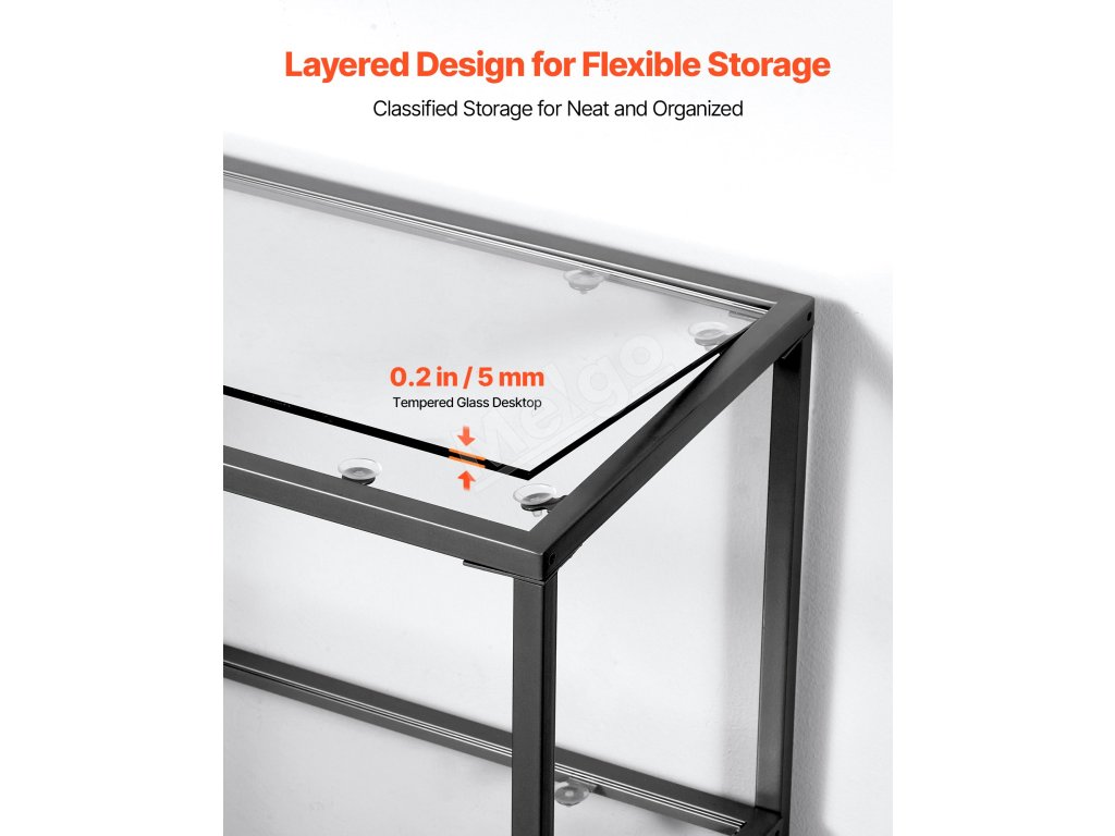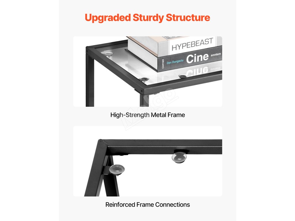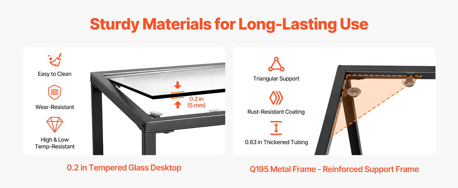 Je vyrobený s kovovým rámom Q195, ktorý unesie až 66 libier / 30 kg, čo zaručuje stabilitu bez kolísania. Hrubé tvrdené sklo s vysokou priehľadnosťou je odolné proti poškriabaniu a ľahko sa utiera, takže si zachováva svieži vzhľad.
