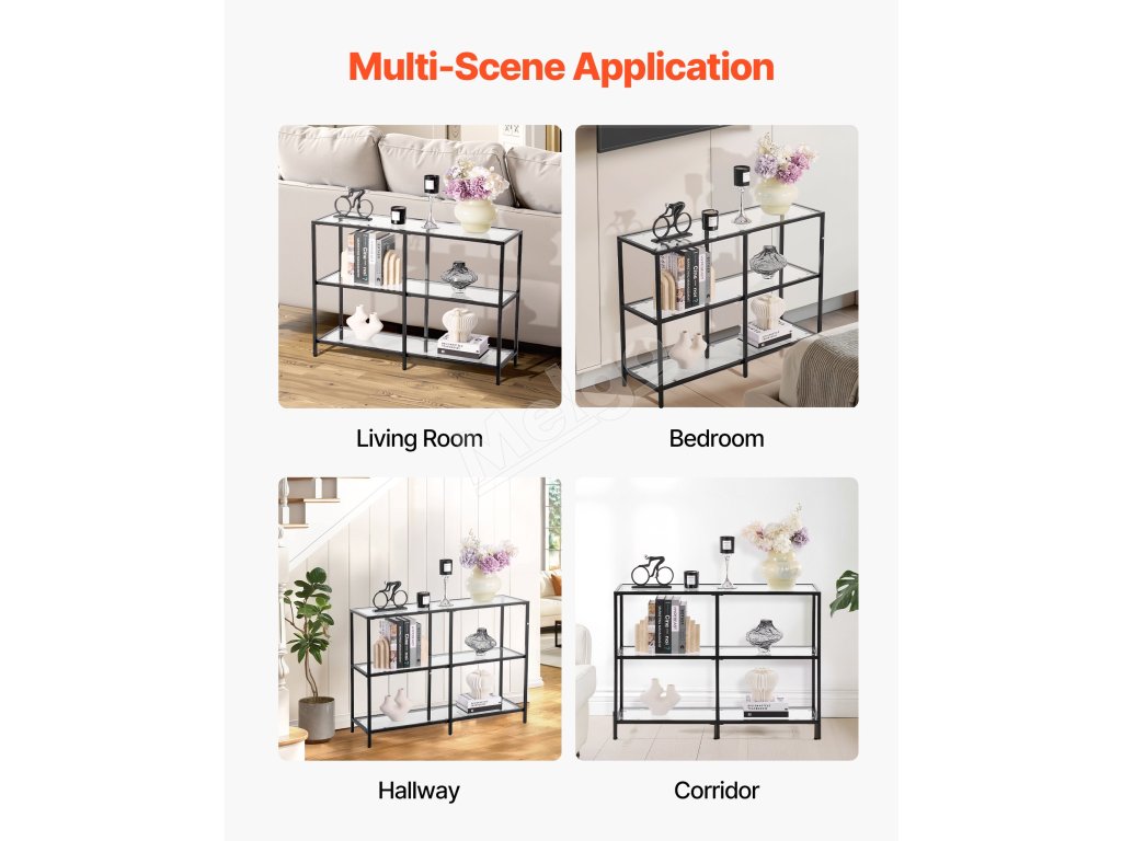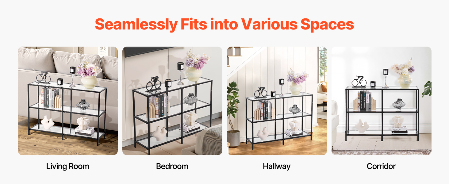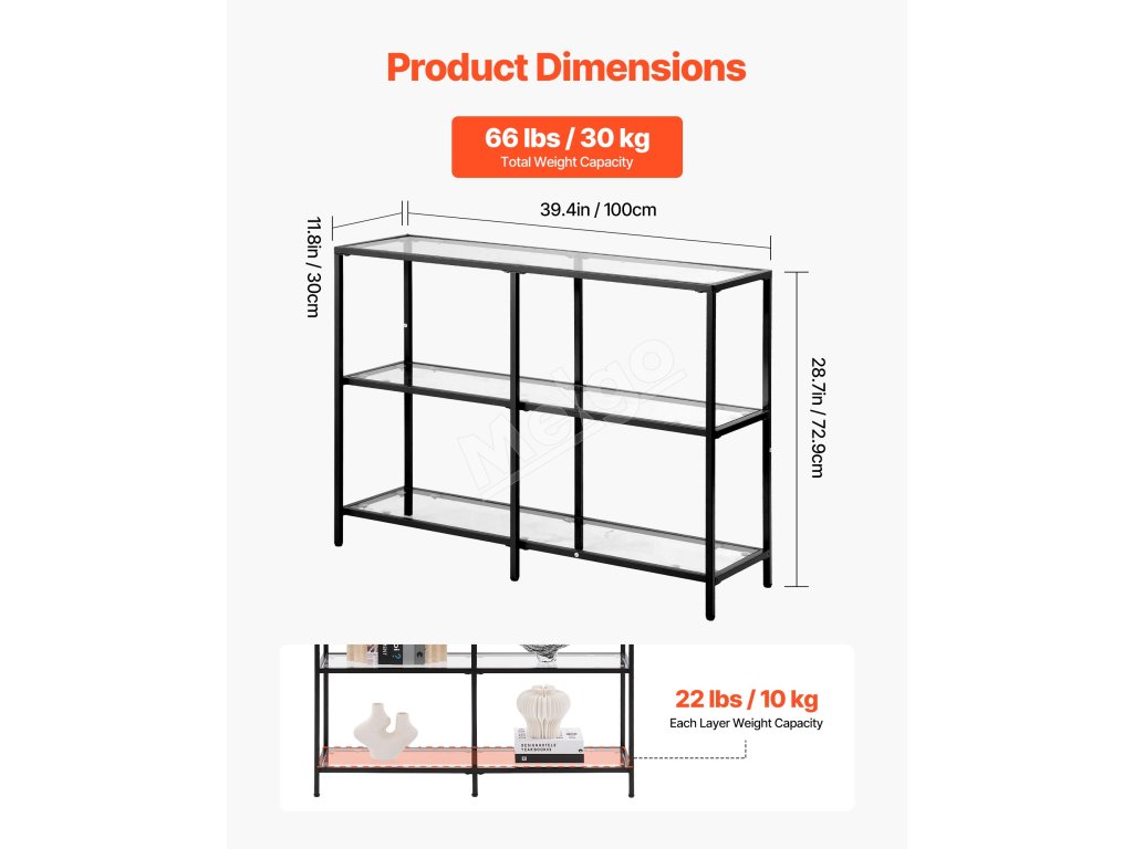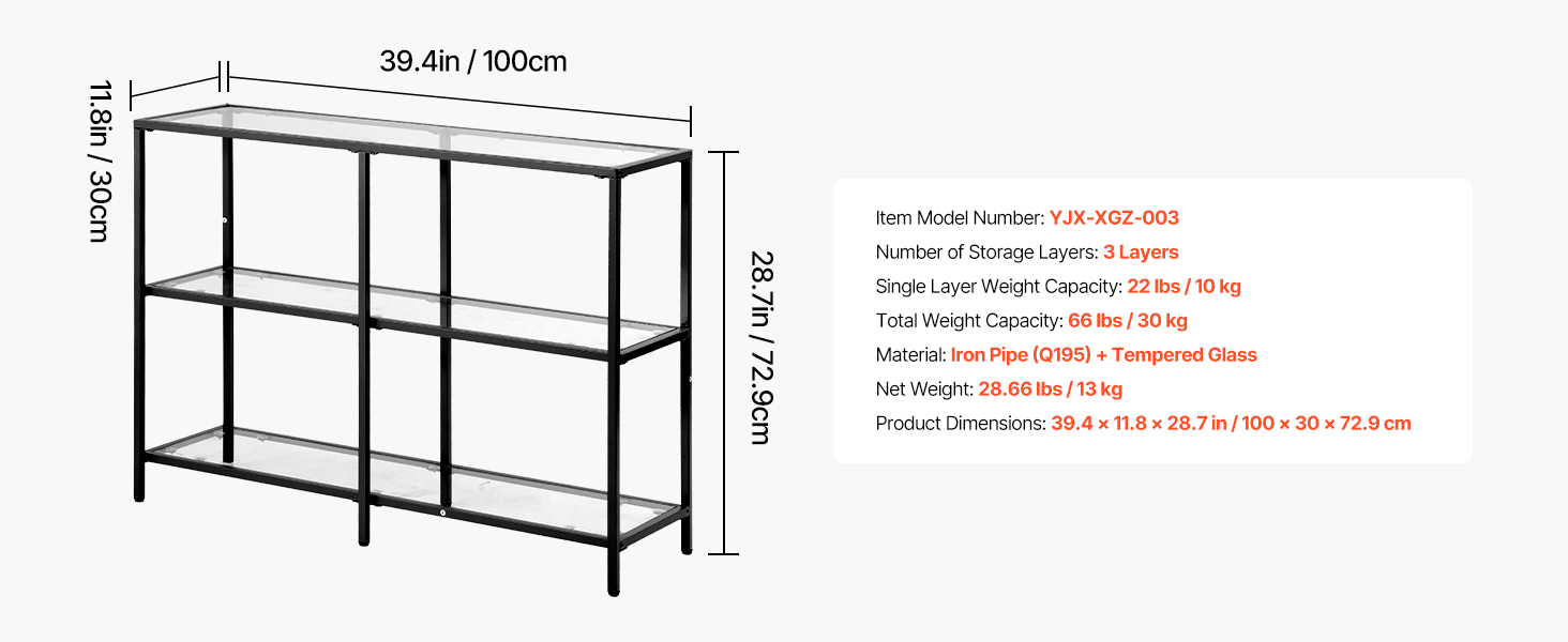 Je vyrobený s kovovým rámom Q195, ktorý unesie až 66 libier / 30 kg, čo zaručuje stabilitu bez kolísania. Hrubé tvrdené sklo s vysokou priehľadnosťou je odolné proti poškriabaniu a ľahko sa utiera, takže si zachováva svieži vzhľad.