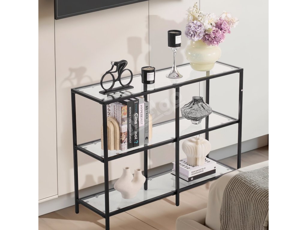 Konzolový stôl z tvrdeného skla, 3 police, obdĺžnikový, zlaté nohy