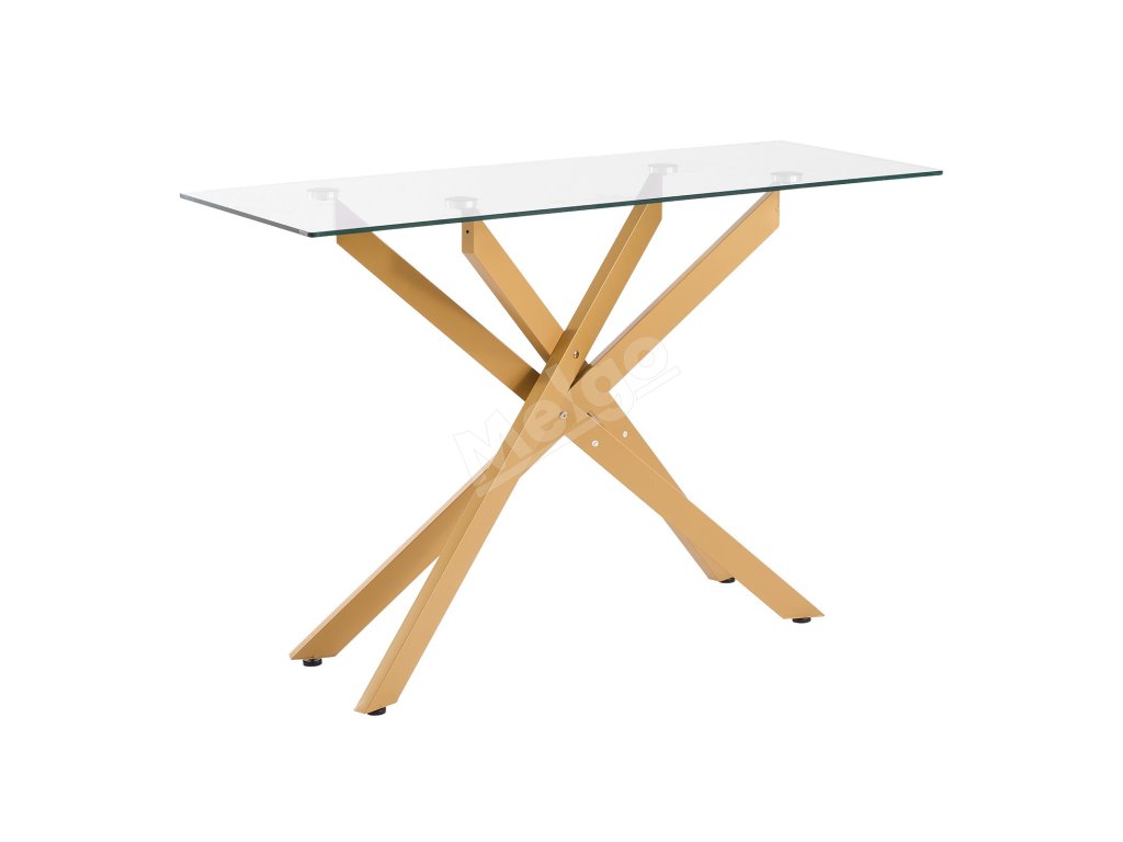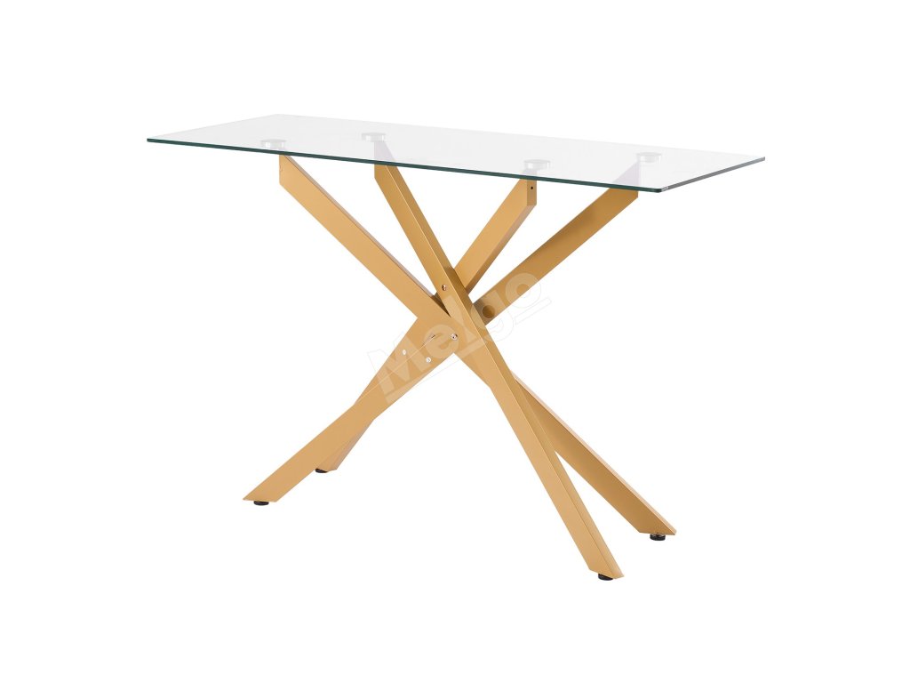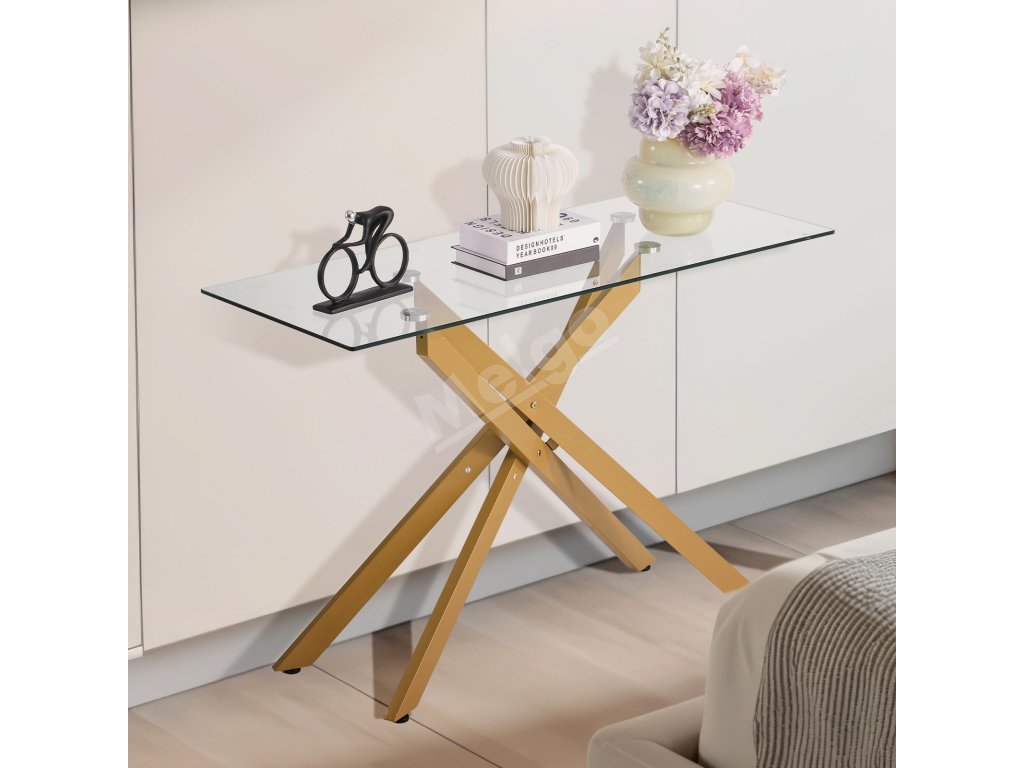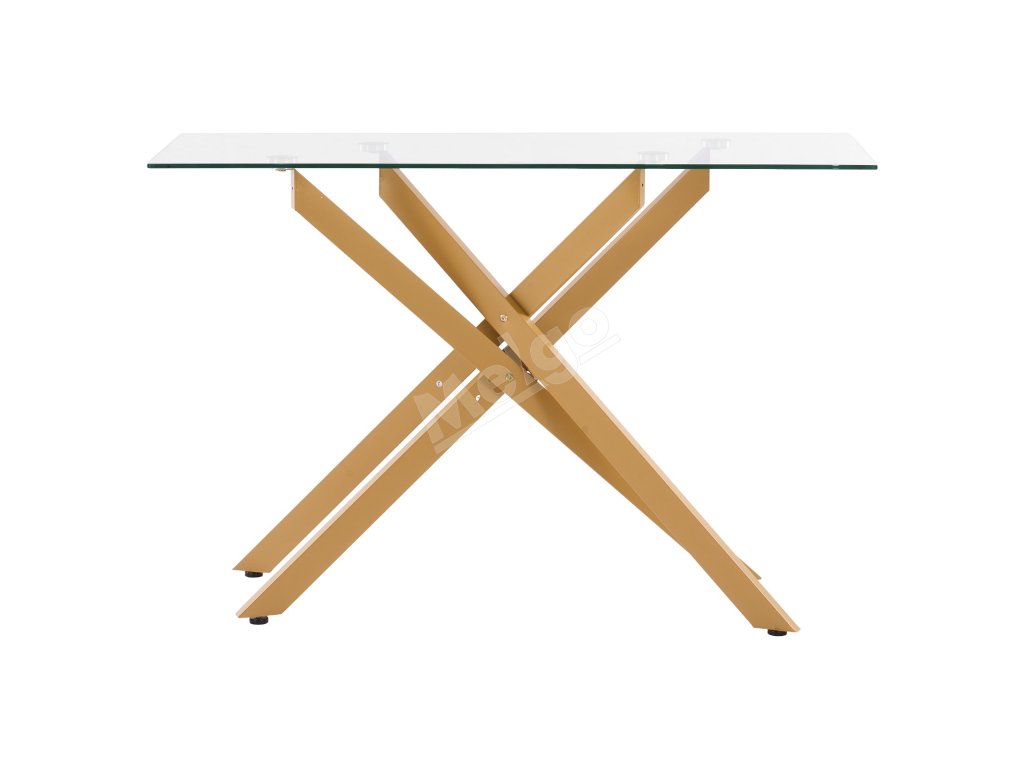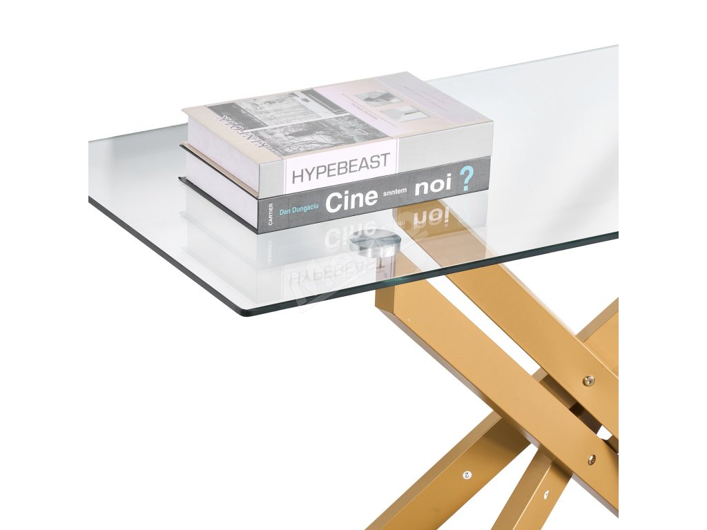 Sklenený stolík obdĺžnikový s kaleným sklom a železnými krížmi, zlatý