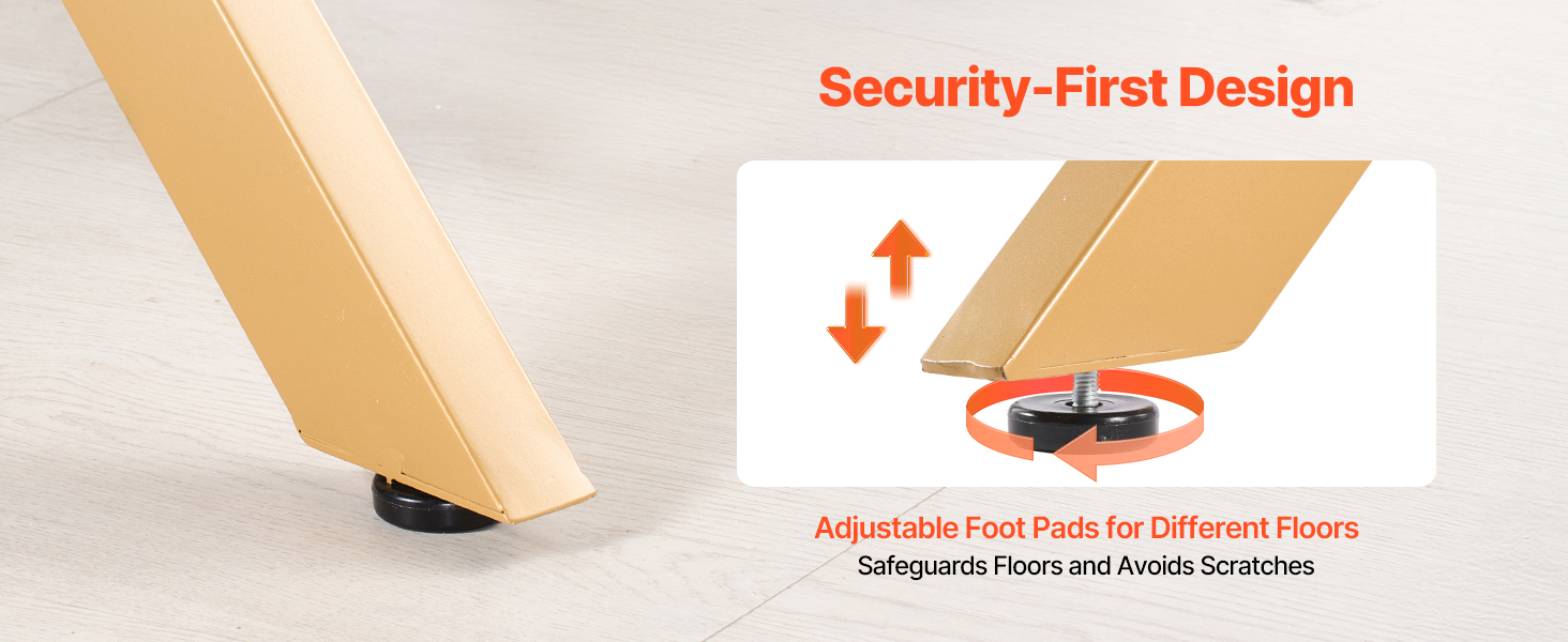 Nastaviteľné podložky pod nohy zabezpečujú stabilitu stola na nerovných podlahách a poskytujú ochranu pred poškriabaním podlahy.