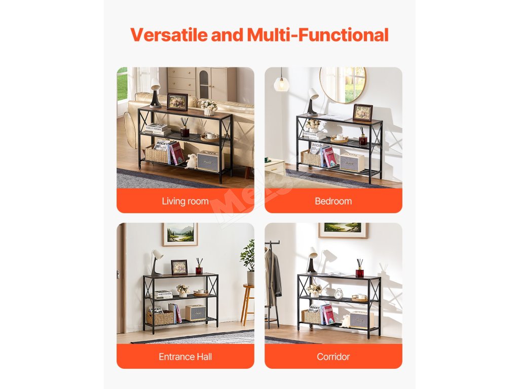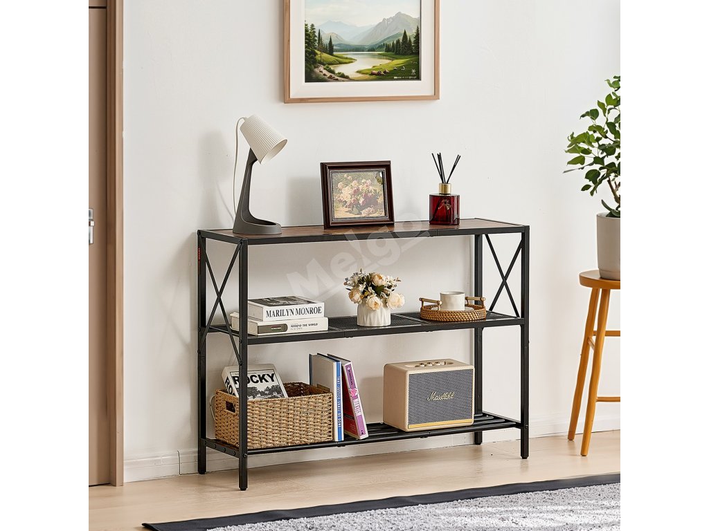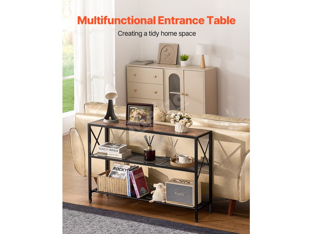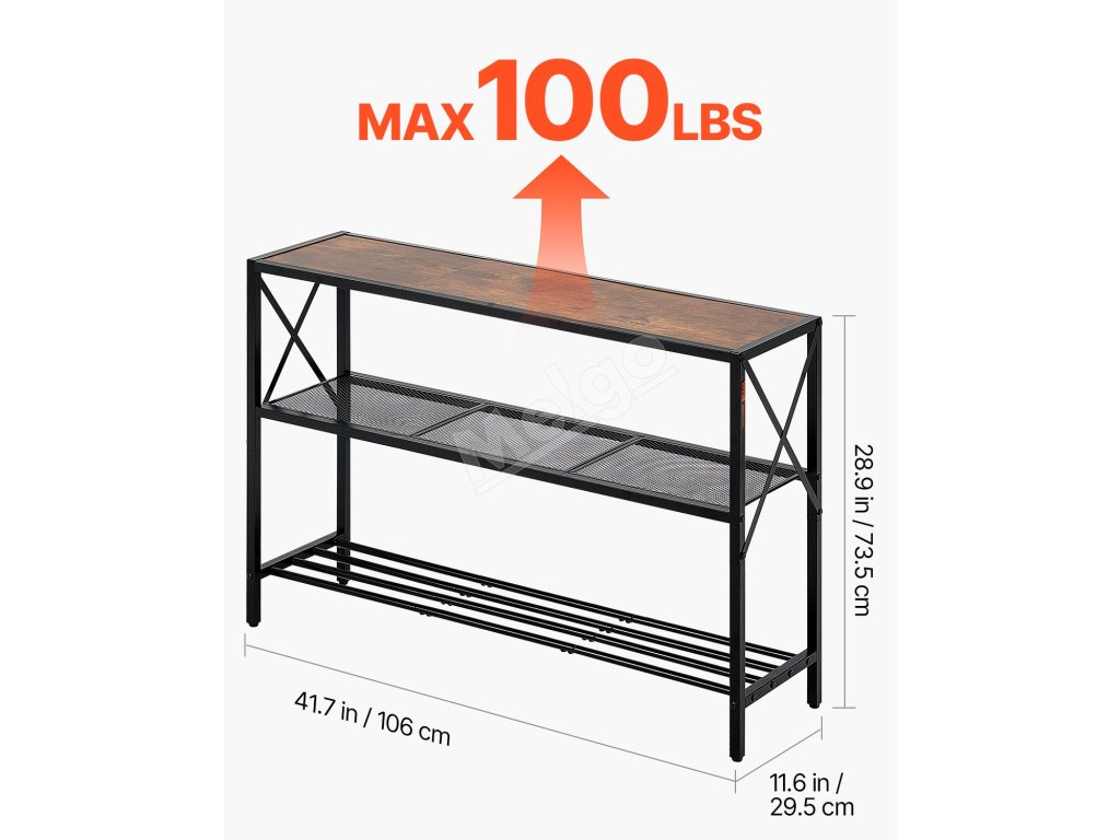 Úzky konzolový stolík za pohovkou dĺžka 41.7 in, 3 police, kovový rám