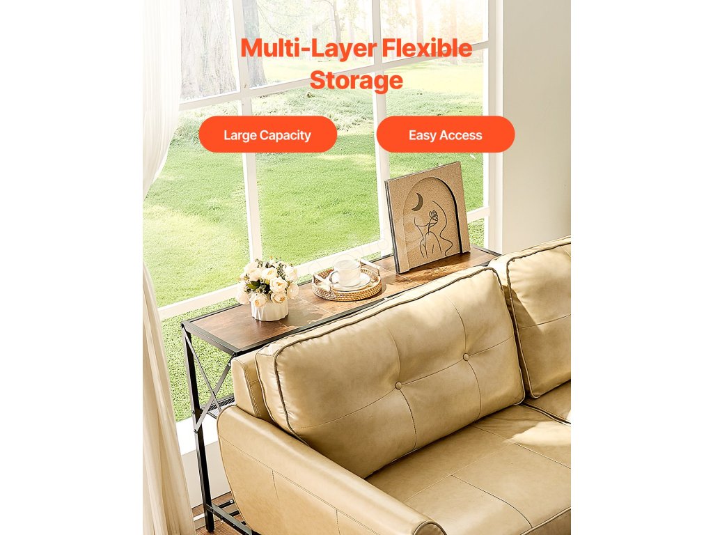 Tento úzky konzolový rozkladací stolík na pohovku sa vďaka svojim kompaktným rozmerom dá ľahko umiestniť do úzkych medzier alebo za pohovku a poskytuje úložný a výstavný priestor na rôzne predmety bez toho, aby ste mrhali cenným priestorom na podlahe.