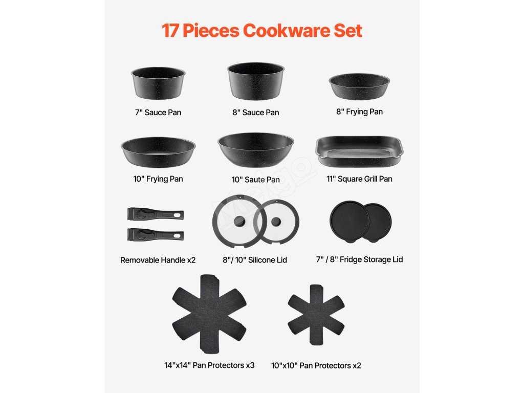 17-dielna sada riadu, granitový nepriľnavý, indukcia, do rúry, čierna