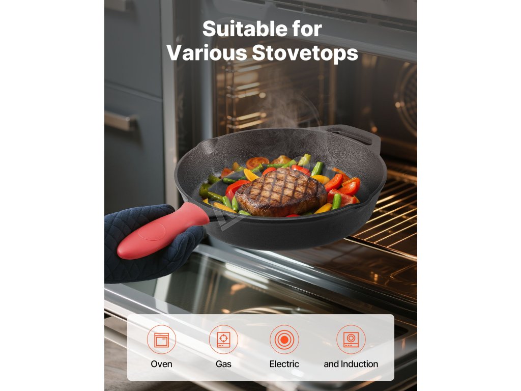 Odpoveď: Táto panvica je vybavená rukoväťou so silikónovou izoláciou, ktorá zostáva chladná na dotyk aj počas varenia pri vysokej teplote. Rukoväť je bez problémov integrovaná do panvice prostredníctvom jednodielneho odliatku pre väčšiu stabilitu a odolnosť.