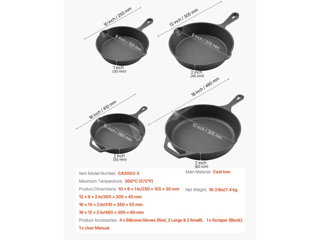 Liatinová sada panvíc 4 ks 155,205,260,305 mm, do rúry/plynu/indukcie
