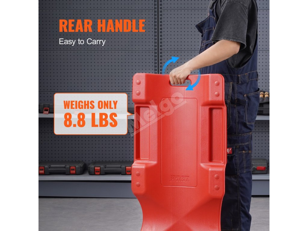 Tento mechanický creeper, vyrobený z vysokopevnostného plastu, je navrhnutý tak, aby uniesol plnú hmotnosť tela bez toho, aby sa ohol alebo zrútil. Ponúka vynikajúcu odolnosť proti opotrebovaniu a ochranu proti nárazom, čím zabezpečuje stabilitu, či už sedíte, alebo ležíte.