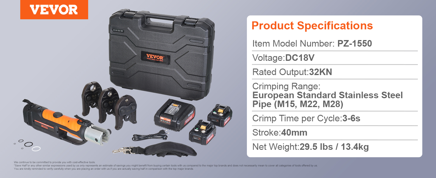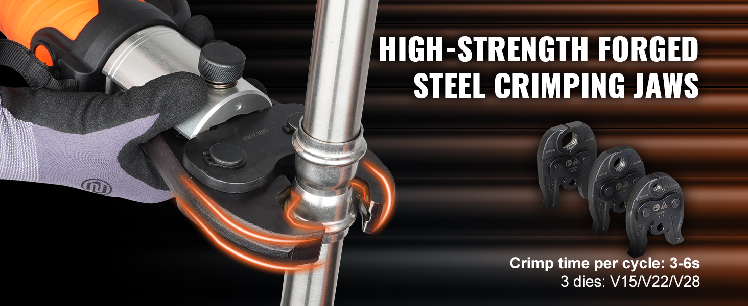 Lítiový akumulátorový krimpovací nástroj na bezpečné spájanie potrubí. Vhodné na spájanie medených rúr a rúr z nehrdzavejúcej ocele. V porovnaní s ručnými modelmi šetrí čas a námahu vďaka lepšej kontrole. (Ak potrebujete lisovať iné typy rúrok, zakúpte si príslušné lisovacie čeľuste samostatne)
