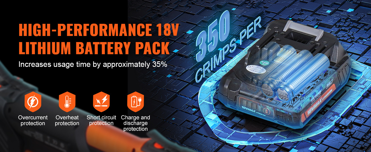 Naša súprava lisovacieho náradia sa dodáva s 2 batériami, ktoré umožňujú až 350 krimpovacích úkonov na jedno plné nabitie. To znižuje potrebu častého dobíjania a spĺňa požiadavky na dlhodobú prácu.