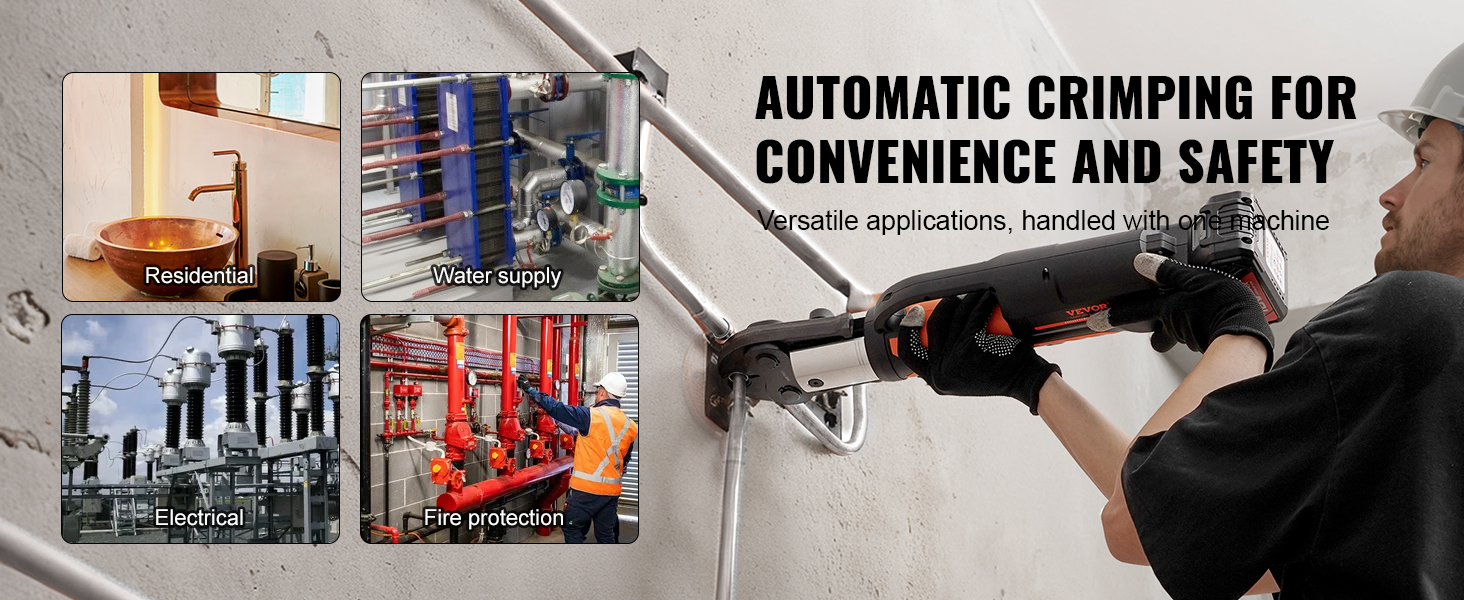 Akumulátorové elektrické lisovacie náradie je vhodné na efektívne a presné lisovanie rúr z nehrdzavejúcej ocele a iných potrubí. Je ideálny najmä pre stavebné práce na stavbe, výrobné linky v továrňach a údržbárske služby, čím zvyšuje efektivitu práce.