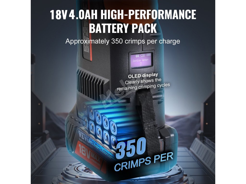 Naša súprava lisovacieho náradia sa dodáva s 2 batériami, ktoré umožňujú až 350 krimpovacích úkonov na jedno plné nabitie. To znižuje potrebu častého dobíjania a spĺňa požiadavky na dlhodobú prácu.