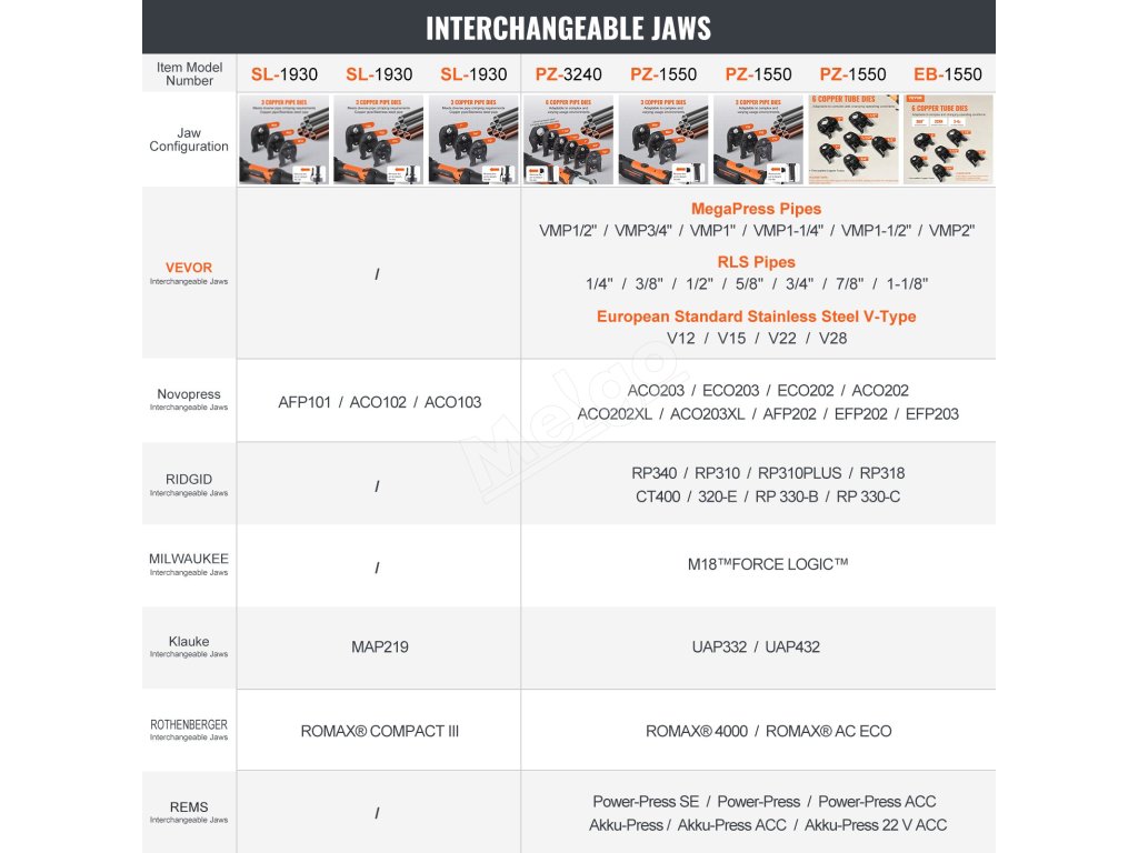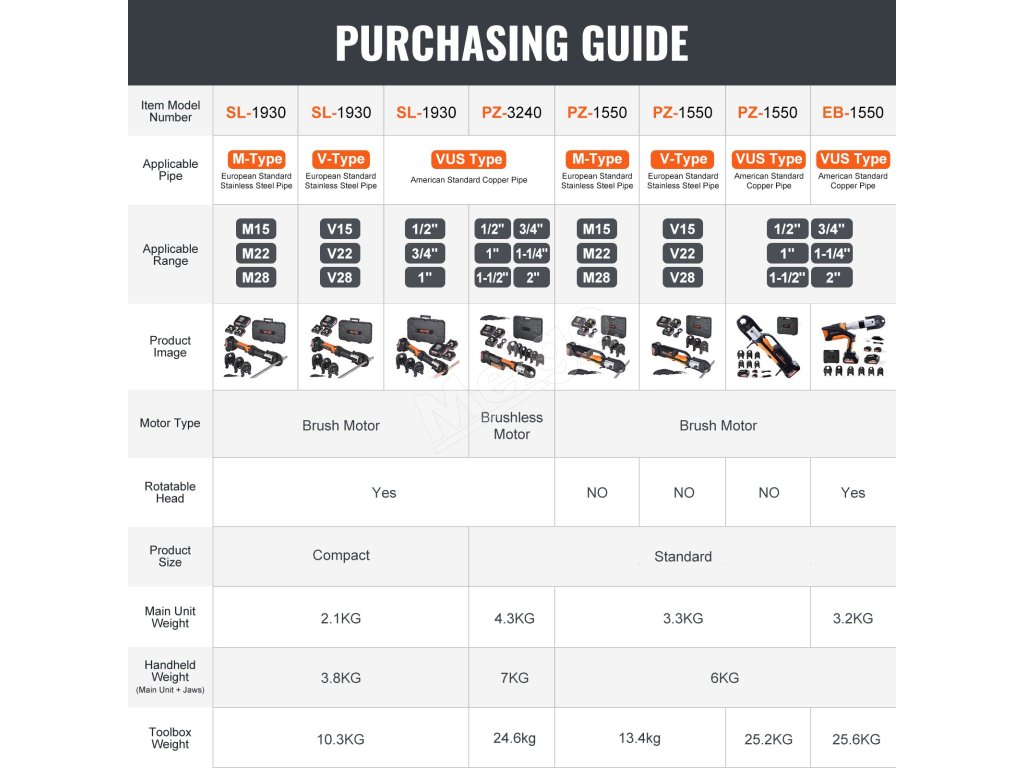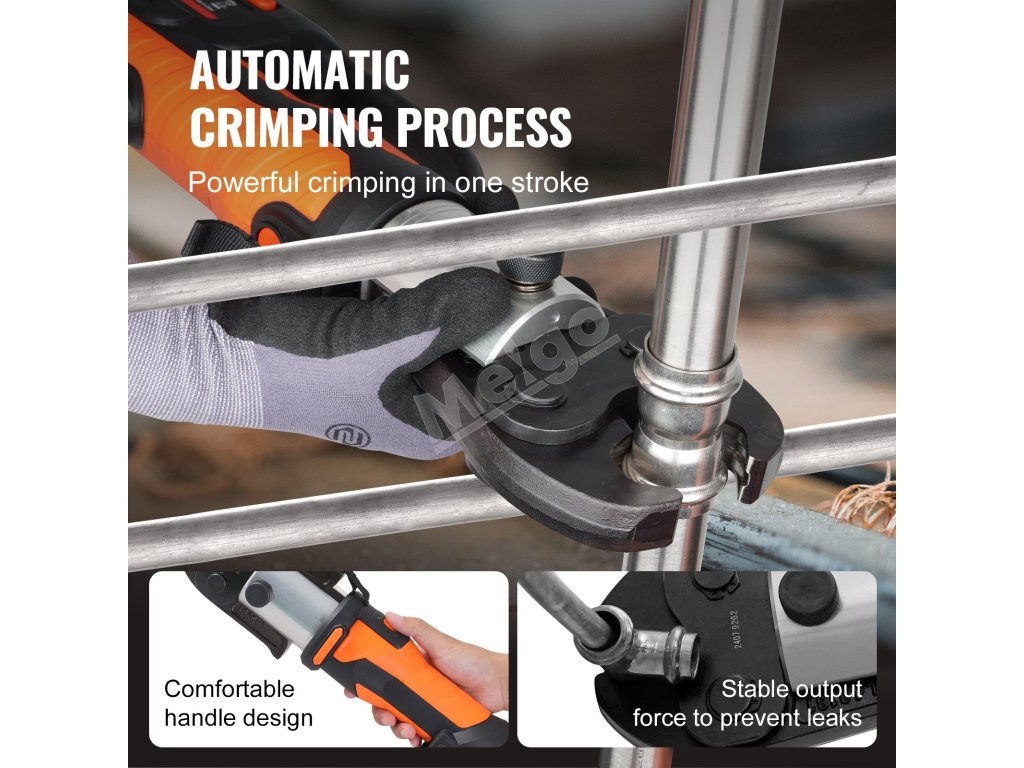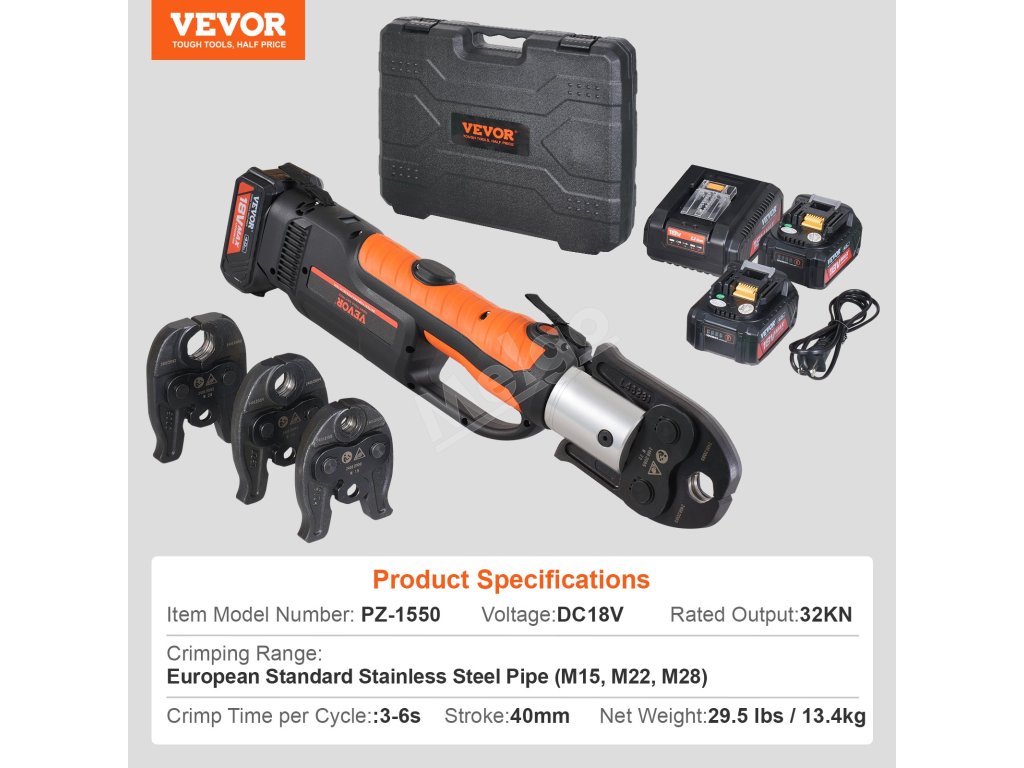 Lítiový akumulátorový krimpovací nástroj na bezpečné spájanie potrubí. Vhodné na spájanie medených rúr a rúr z nehrdzavejúcej ocele. V porovnaní s ručnými modelmi šetrí čas a námahu vďaka lepšej kontrole. (Ak potrebujete lisovať iné typy rúrok, zakúpte si príslušné lisovacie čeľuste samostatne)