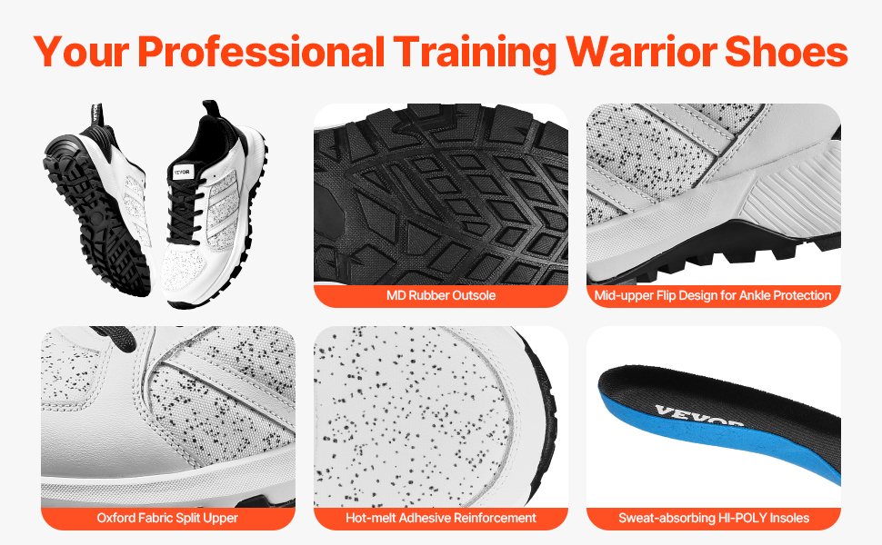Gumová podrážka MD poskytuje silnú priľnavosť, s ochranou proti prevráteniu strednej časti chodidla a zvršku. Zvršok z tkaniny Oxford je priedušný, zatiaľ čo tepelne lisované výstuhy chránia oblasti s vysokým opotrebovaním. Stielka absorbuje pot a zabraňuje nepríjemným pachom, čím zabezpečuje pohodlie počas dlhých tréningov.