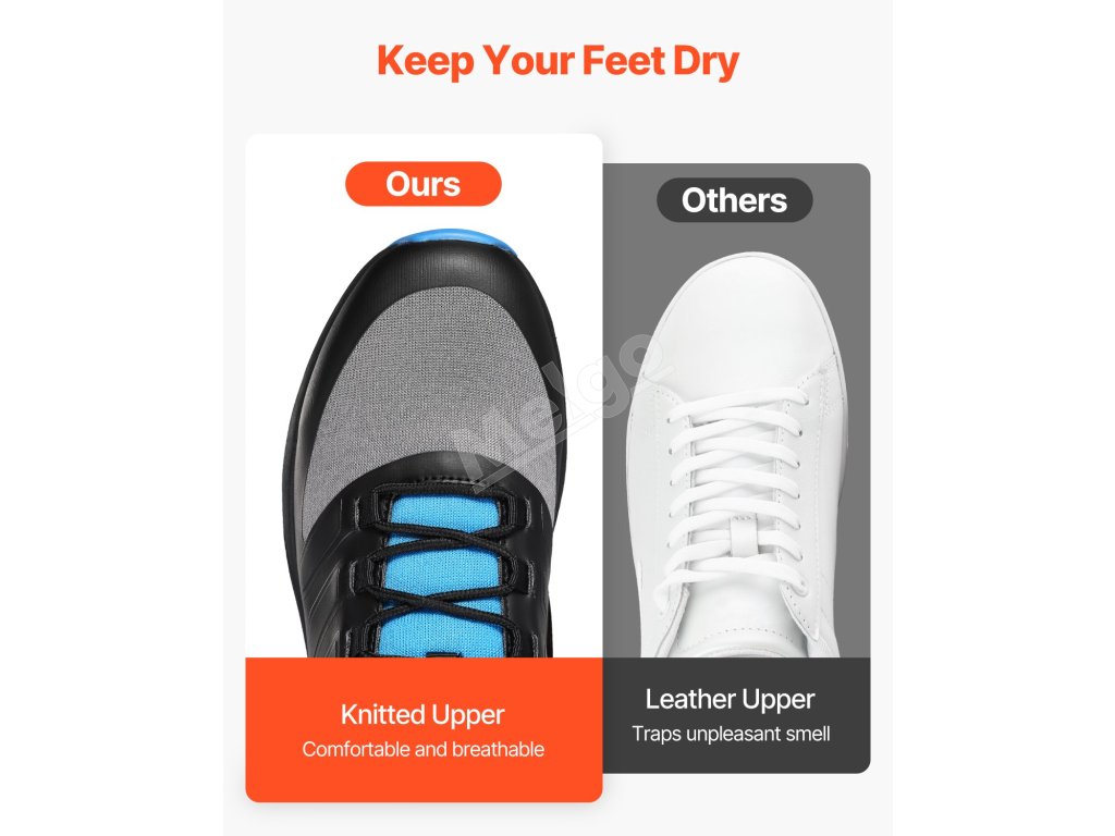 Gumová podrážka MD poskytuje silnú priľnavosť, s ochranou proti prevráteniu strednej časti chodidla a zvršku. Mäkký a priedušný pletený zvršok je priedušný, zatiaľ čo tepelne lisované výstuhy chránia oblasti s vysokým opotrebovaním. Stielka absorbuje pot a zabraňuje nepríjemným pachom, čím zabezpečuje pohodlie počas dlhých tréningov.