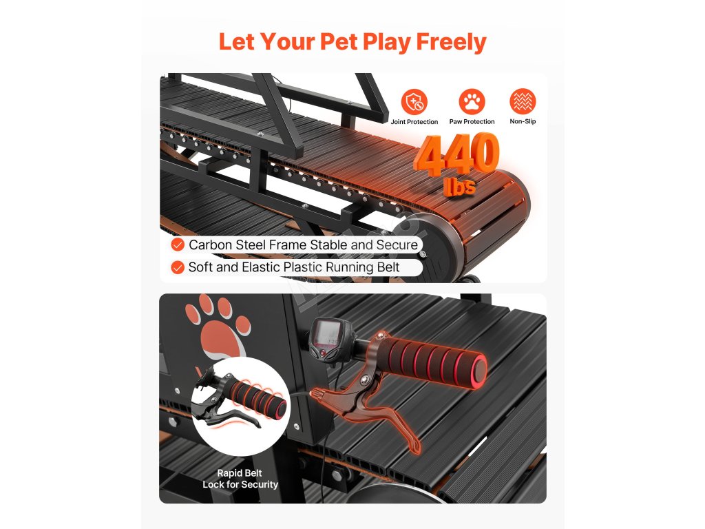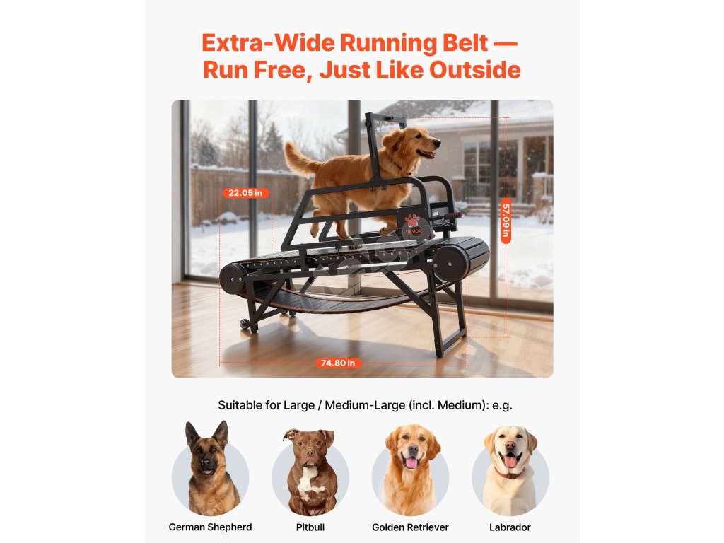 Tento bežecký pás pre psov nevyžaduje žiadne napájanie a funguje za všetkých poveternostných podmienok, čo umožňuje vášmu psovi zostať aktívnym doma a udržiavať pozitívny, energický režim.