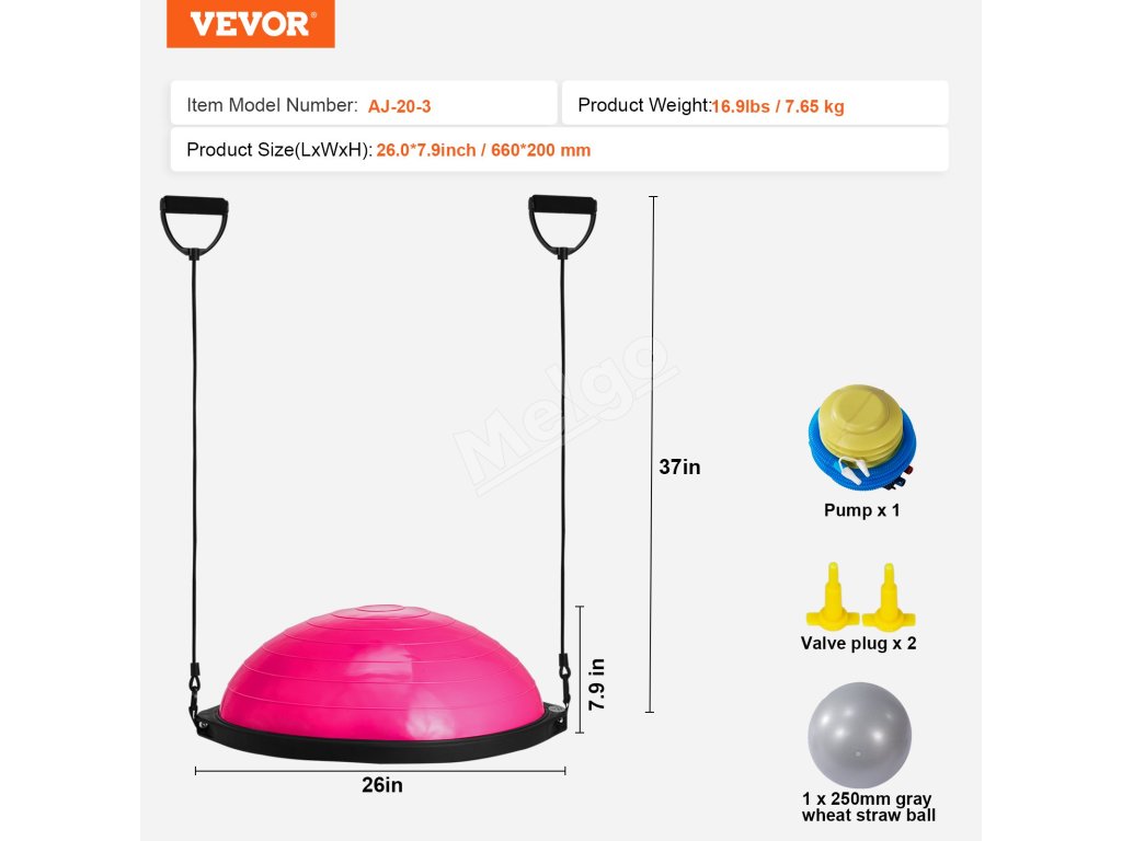 Tento balančný loptový trenažér dokáže uvoľniť potenciál vášho tela, zlepšiť silu, rovnováhu a flexibilitu. Ideálny na zvýšenie celkovej vitality a maximalizáciu účinnosti tréningu. Naša polkruhová stabilizačná lopta sa dodáva s dvoma odnímateľnými cvičebnými lanami s mäkkými penovými rukoväťami.