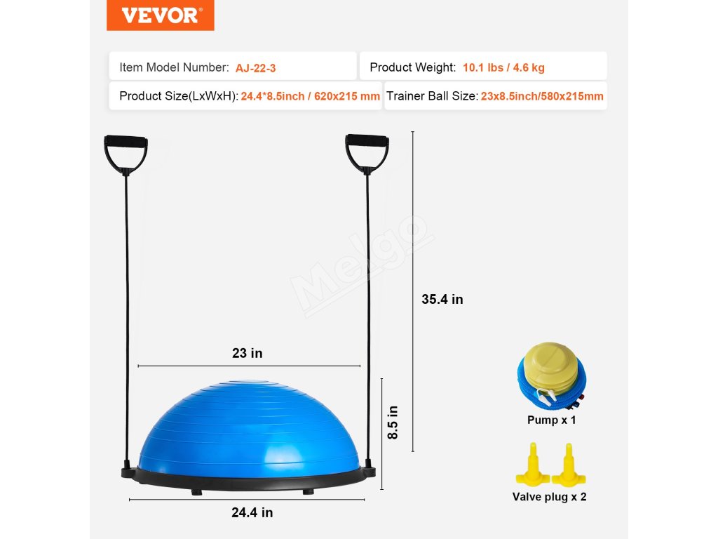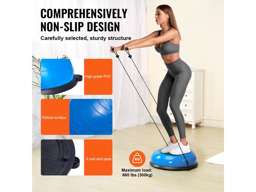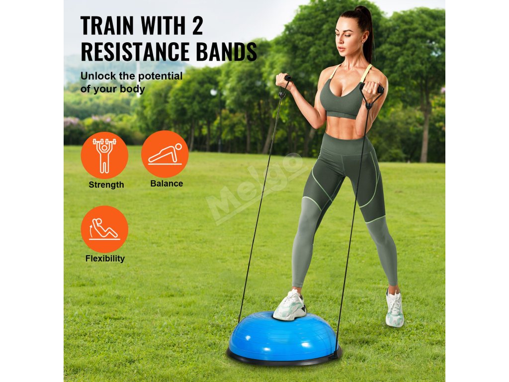 Tento balančný loptový trenažér dokáže uvoľniť potenciál vášho tela, zlepšiť silu, rovnováhu a flexibilitu. Ideálny na zvýšenie celkovej vitality a maximalizáciu účinnosti tréningu. Naša polkruhová stabilizačná lopta sa dodáva s dvoma odnímateľnými cvičebnými lanami s mäkkými penovými rukoväťami.