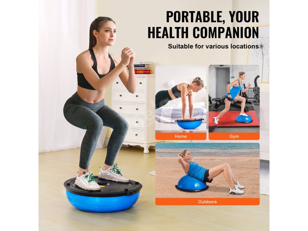 Vďaka dvom rukovätiam v spodnej časti možno tento balančný trenažér s polovičnou loptou používať s cvičebnými lanami. Vhodný na rôzne cvičenia doma, v posilňovni alebo vonku. Ideálna pre osobných trénerov, inštruktorov fitnes, telocvične, štúdiá jogy a športové tímy.
